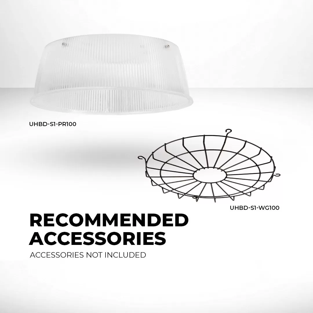 The UFO LED High Bay is a compact and energy-efficient replacement for 250W metal halide fixtures. Durable powder-coated aluminum housing is corrosion resistant and designed with built-in heat sinks for thermal management. The fixture is IP65 rated for wet locations, making it ideal for applications indoors or outdoors; such as warehouses, auditoriums, and outdoor pavilions.