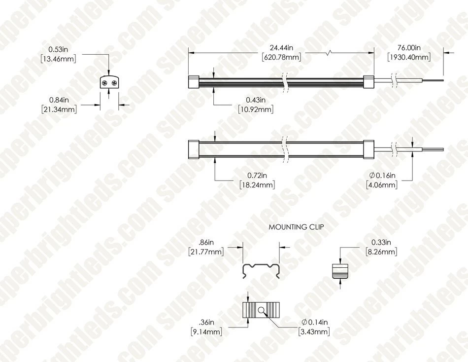 This versatile light bar is designed for indoor and outdoor use. The compact design can fit discreetly in narrow spaces while producing a wide beam of light. The low voltage is ideal for cabinet lighting or deck and patio lighting. IP67 rating protects against weather conditions. Use for under-cabinet lighting, showcase lighting, or deck lighting. High CRI is ideal for environments that rely on accurate rendering and striking visual displays. Mount using the included stainless steel clips and hardware.