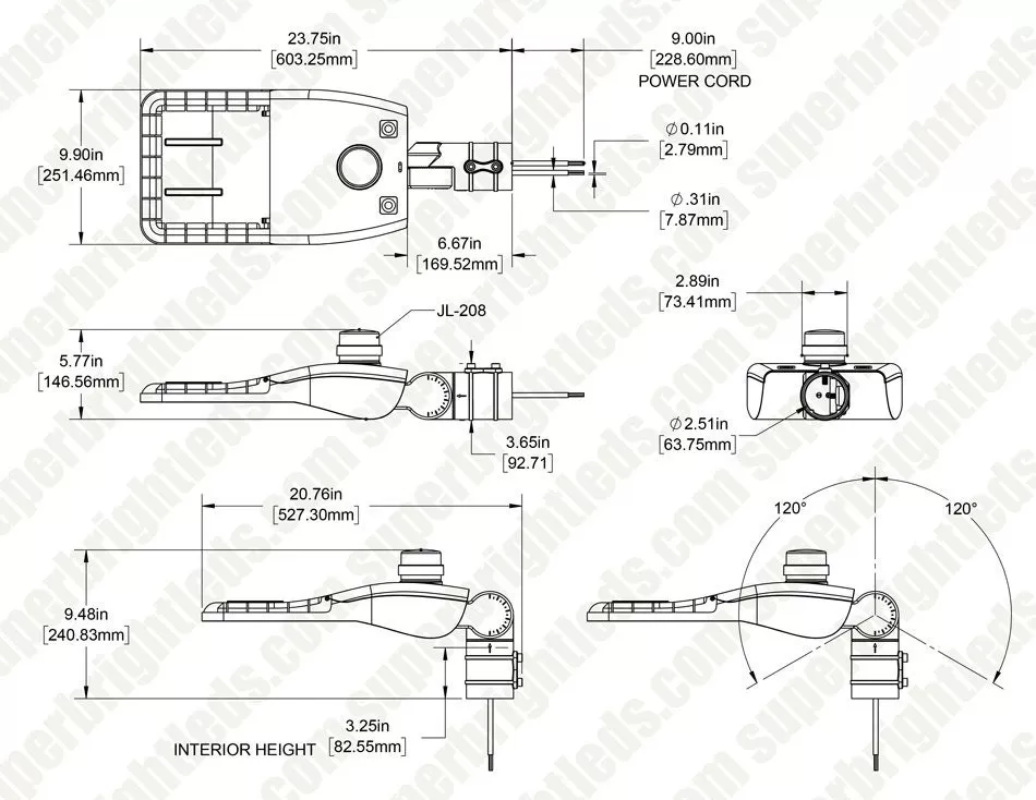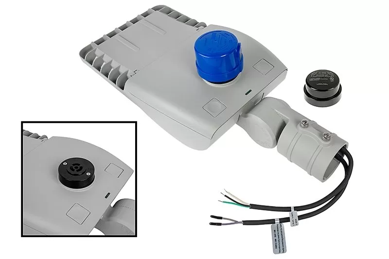 The 120W LED Street Light replaces 250W MH fixtures, improving energy-efficiency and lowering maintenance costs. Up to 16,250 lumens are delivered in a Type II distribution pattern, ideal for roadway and walkway lighting. Fixture has toolless construction for easy access. The included knuckle slipfitter mount is adjustable in 15° increments and attaches to a 2.5” pole. Alternative pole mount (sold separately) available for round or square options. Aluminum housing with a heavy-duty glass lens. Street light fitted with a dusk-to-dawn photocell or shorting cap.