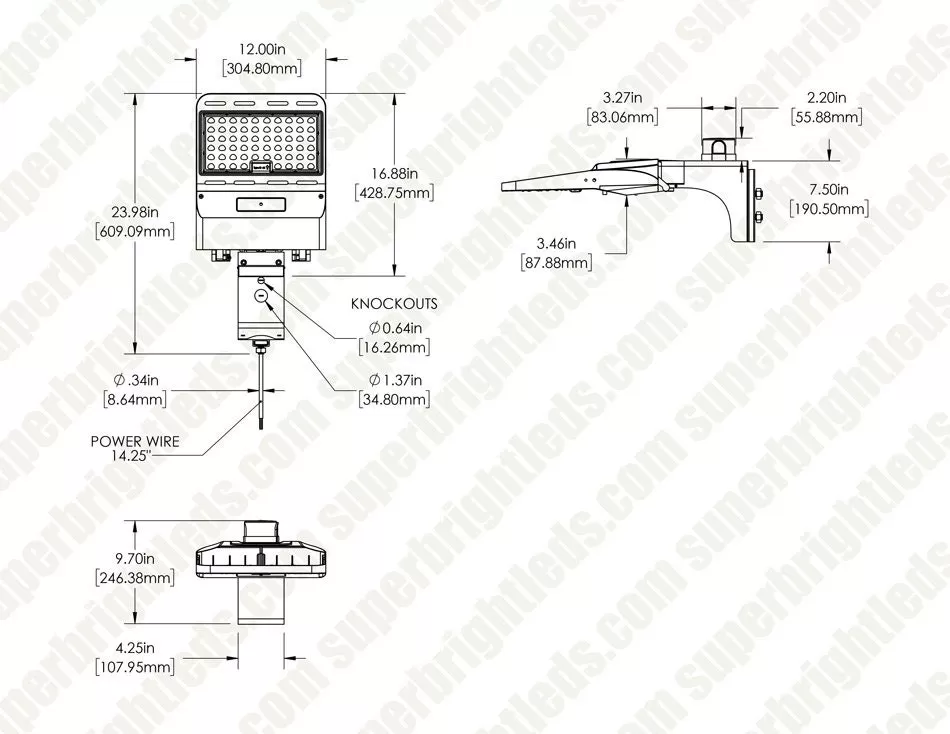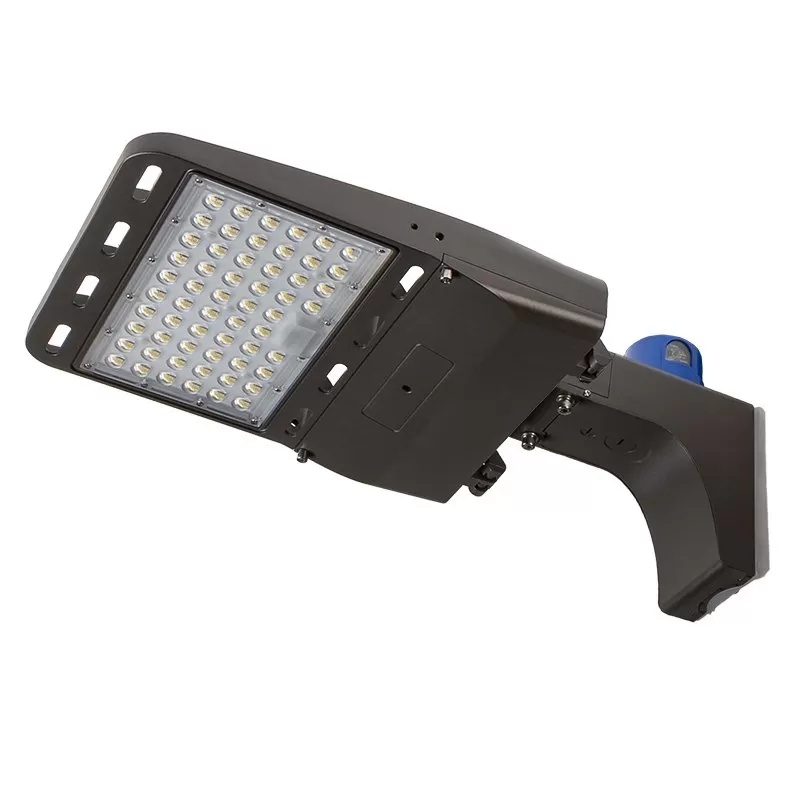 This LED flood light emits 21,000 lumens of cool white illumination and has a wide Type III distribution pattern. The 150-watt LED fixture is designed to replace 400-watt metal-halide (MH) lights with comparable output. It has a waterproof die cast aluminum housing and a polycarbonate lens. Securely mount the fixture using the included fixed arm mount. Install for landscape lighting, building facades, and general area lighting.