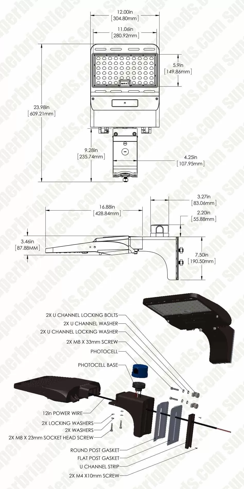 - Bronze die-cast aluminum housing with a durable polycarbonate lens