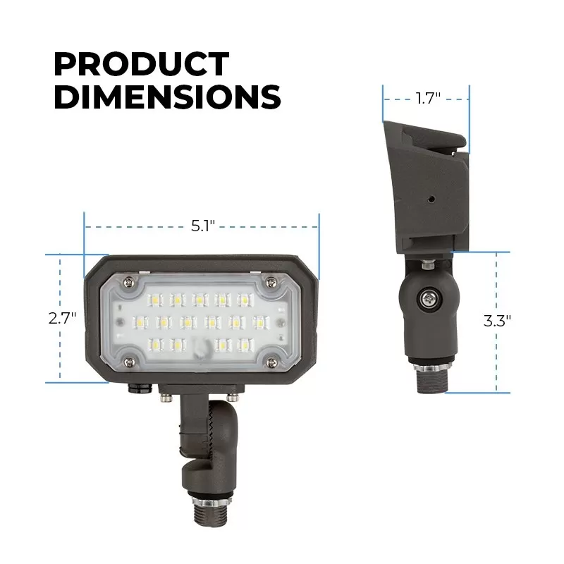 The LED flood light is a compact and versatile lighting solution for residential and commercial applications. The wide 80°x 110° beam angle is ideal for landscape lighting and signs. The flood light is built to with stand the conditions of the outdoor environment with the powder-coated aluminum housing and the IP65 waterproof rating. Adjust the light to the desired placement using the included knuckle mount. Using the mount, simply install the fixture onto a junction box.