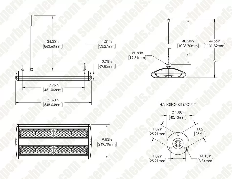 - Suspends light up to 40″ from mounting surface