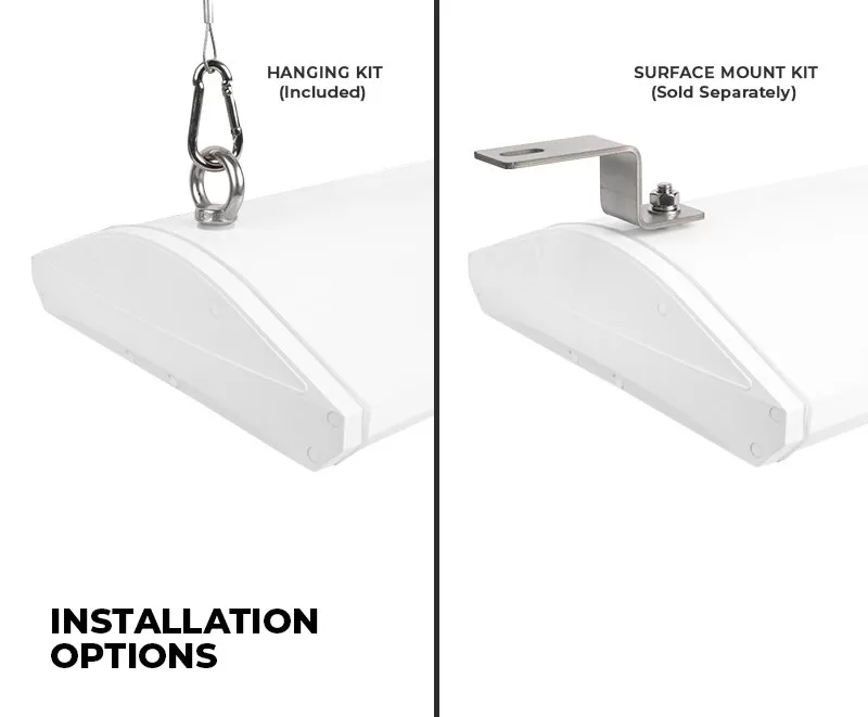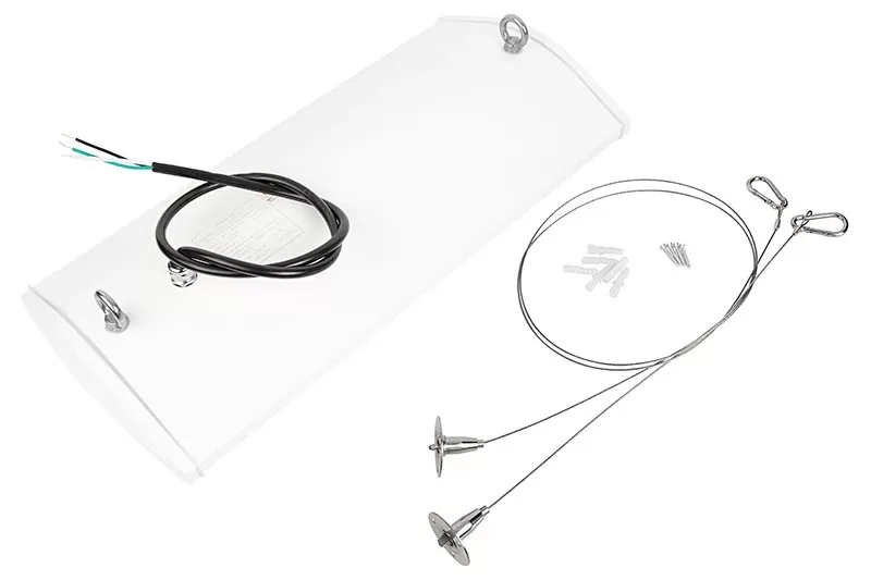 The 160-watt 2-foot LED linear high bay washdown light fixture is tested and certified by NSF International with an easy-to-clean washdown design ideal for lighting in controlled environments. The powder-coated corrosion-resistant aluminum exterior is smooth, reducing water and debris buildup. It features a top-of-the-line IP69K certified waterproof rating able to withstand 1,450 psi high-pressure washdowns necessary for rigorous sanitary applications. This lightweight fixture includes a suspension mounting kit with optional surface mount brackets available separately. Ideal for food processing plants, beverage preparation facilities, commercial kitchens, agriculture processing, and other commercial spaces requiring NSF-certified products.