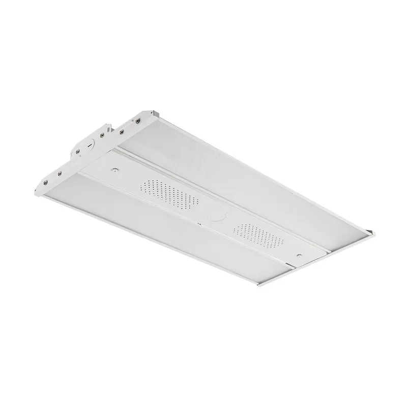 The LED linear high bay is a slim and energy efficient fixture ideal for applications in warehouses, manufacturing facilities, and gymnasiums. The fixture is constructed of a white steel housing with a prismatic polycarbonate lens that delivers uniform light. Increase energy savings by replacing 320W metal halide fixtures with the 140 lm/W high efficacy linear high bay. For more energy savings, pair the fixture with an optional motion sensor.