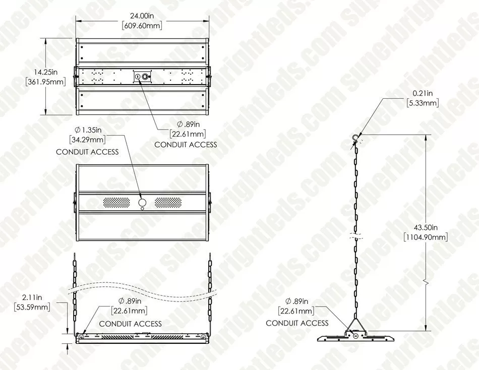2-Foot LED Linear High Bay Light - 220W - 30,800 Lumens - 750W MH Equivalent - 5000K -Lighting Decoration Store lhbd3 50k220h product dims