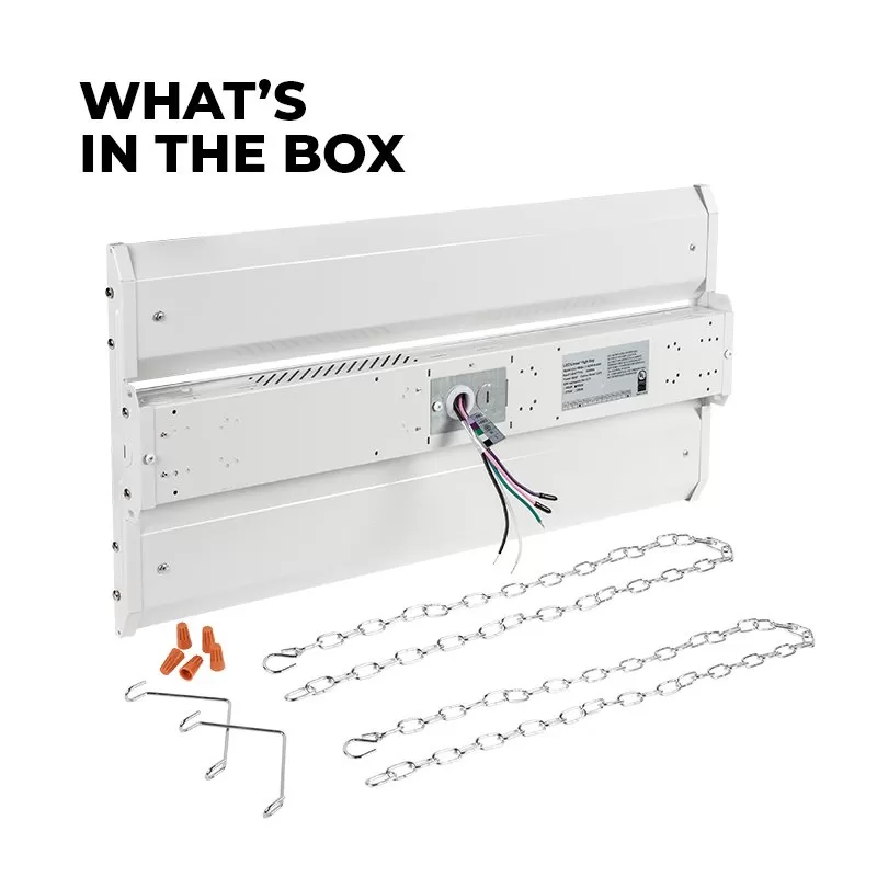 The LED linear high bay is a slim and energy efficient fixture ideal for applications in warehouses, manufacturing facilities, and gymnasiums. The fixture is constructed of a white steel housing with a prismatic polycarbonate lens that delivers uniform light. Increase energy savings by replacing 250W metal halide fixtures with the 145 lm/W high efficacy linear high bay. For more energy savings, pair the fixture with an optional motion sensor.
