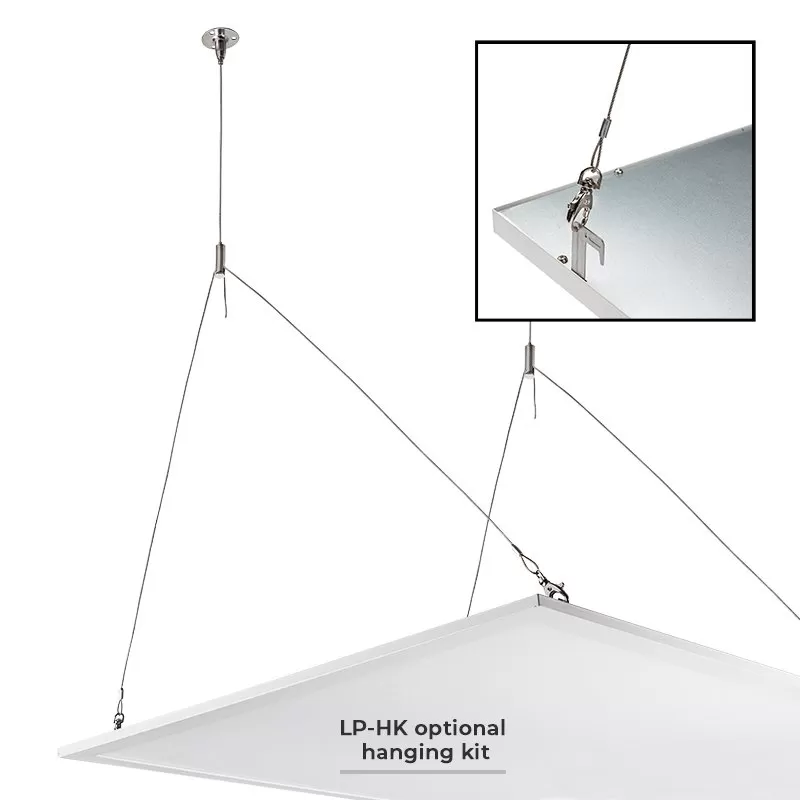 The 2’x2′ surface-mount LED light panel is a perfect replacement for T8 fixtures. Even-Glow® technology creates a uniform distribution of light while the optical diffuser eliminates any visible hotspots. For color temperature control, use a compatible remote or wall controller. Choose between only using the compatible remote or wall control, or using both simultaneously to control these panels. Additionally, one remote and/or wall controller can control multiple panels at one time, which eliminates the need to purchase more than one of each. Use the optional surface mount kit to install on drywall ceilings or to wall mount the light panel. Install the panel light in new construction or upgrade existing fluorescent lighting.