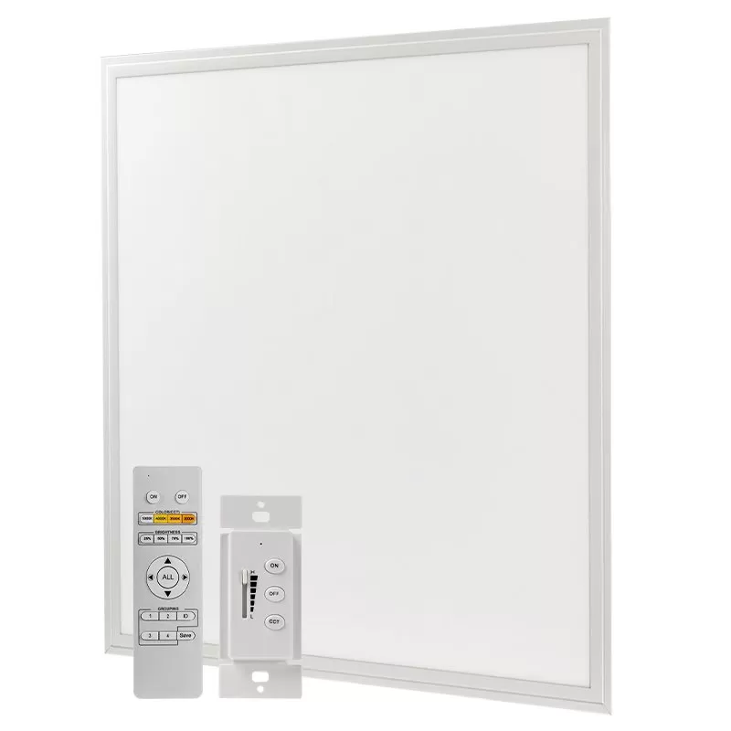 The 2’x2′ surface-mount LED light panel is a perfect replacement for T8 fixtures. Even-Glow® technology creates a uniform distribution of light while the optical diffuser eliminates any visible hotspots. For color temperature control, use a compatible remote or wall controller. Choose between only using the compatible remote or wall control, or using both simultaneously to control these panels. Additionally, one remote and/or wall controller can control multiple panels at one time, which eliminates the need to purchase more than one of each. Use the optional surface mount kit to install on drywall ceilings or to wall mount the light panel. Install the panel light in new construction or upgrade existing fluorescent lighting.