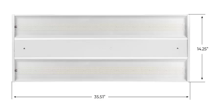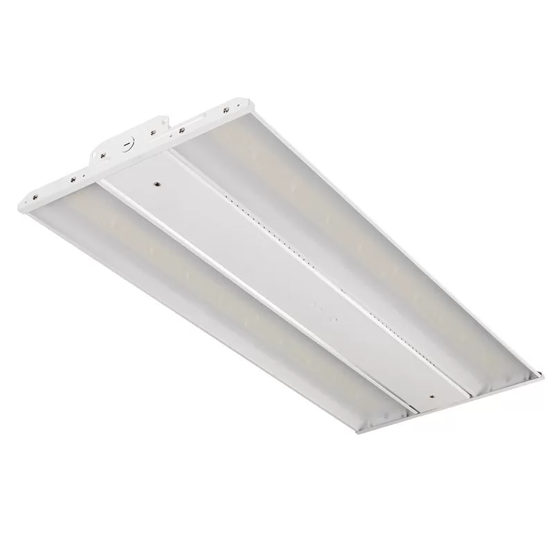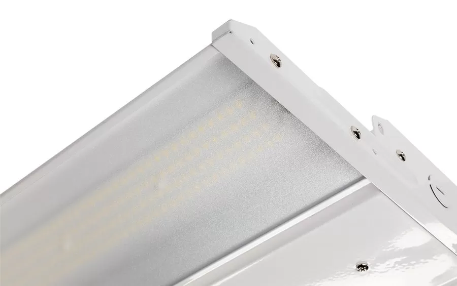 LHBDS1 series Linear High Bay replaces fluorescent fixtures with a less bulky frame and better energy efficiency. The economical LED solution achieves higher efficacy with a housing that is more compact and lighter weight than traditional high bays. Frosted lens creates a wide beam distribution with optimal lumen output for industrial and commercial high ceiling application.