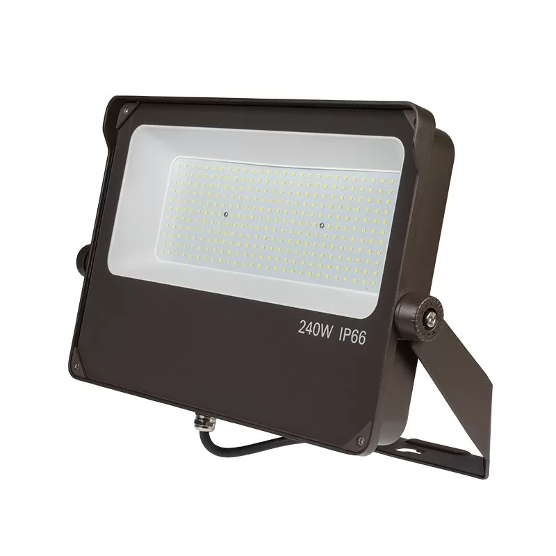The LED flood light features a durable, low-profile design constructed with an impact-resistant tempered glass lens and a heavy-duty aluminum housing. An IP66 waterproof rating protects the fixture in extreme outdoor conditions. Adjust the included steel yoke mount to direct the light where it is needed.