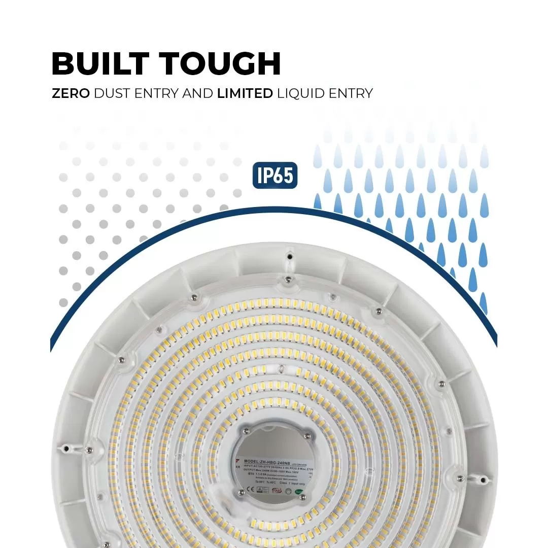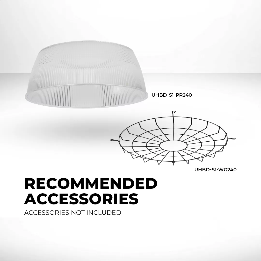 The UFO LED High Bay is a compact and energy-efficient replacement for 1000 W metal halide fixtures. Durable powder-coated aluminum housing is corrosion resistant and designed with built-in heat sinks for thermal management. The fixture is IP65 rated for wet locations, making it ideal for applications indoors or outdoors; such as warehouses, auditoriums, and outdoor pavilions.