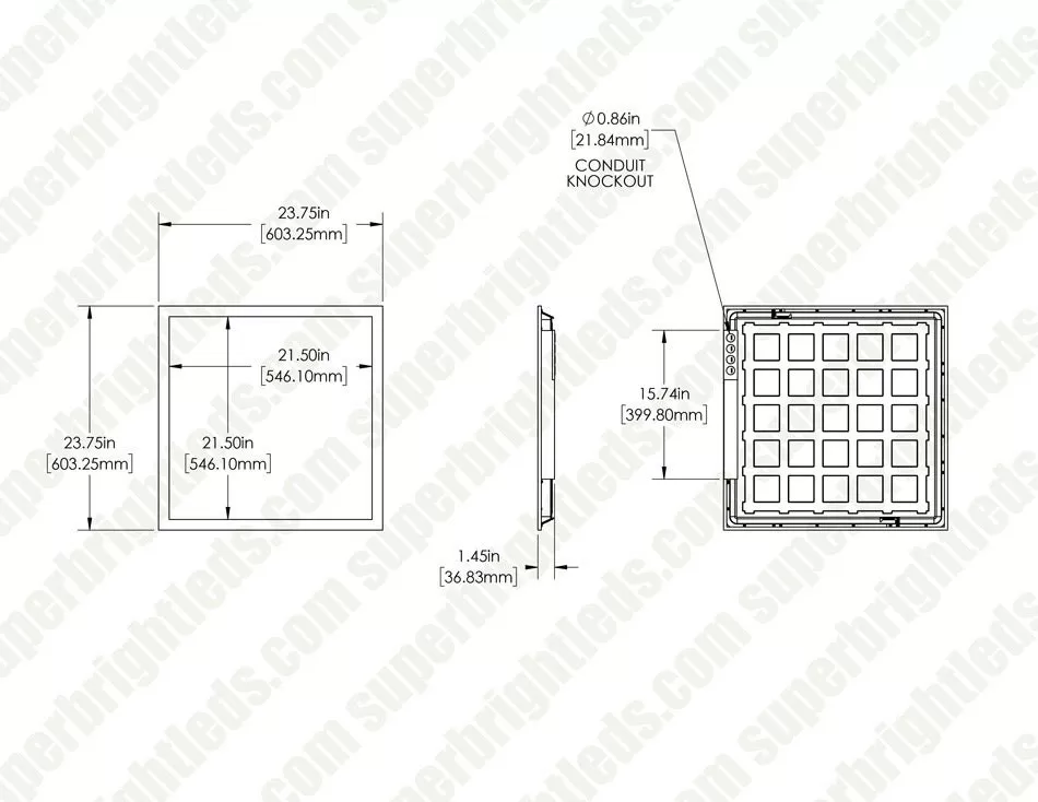 - White aluminum frame, steel backing, and frosted PMMA lens