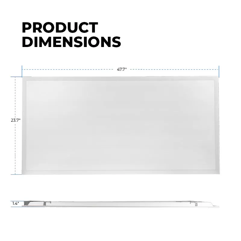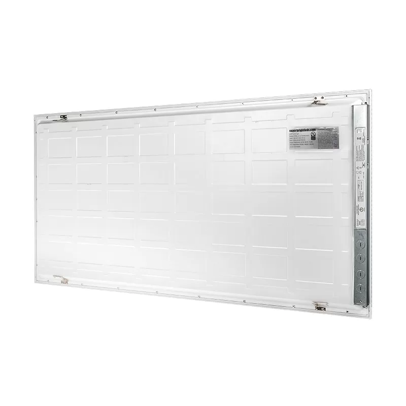 The 2×4 LED flat panel light features selectable CCT and selectable wattage, providing nine fixtures in one. Select the wattage and color temperature for each application setting using the switches on the side of the driver. The white aluminum frame comes with safety tabs on the outside of the fixture to securely install the fixture into standard T-grid drop ceilings. The frosted PMMA lens diffuses the light and creates uniform light distribution free of hotspots. Compatible with a range of optional LED dimmers and a surface mounting kit, all sold separately. Only sold in 2-packs.
