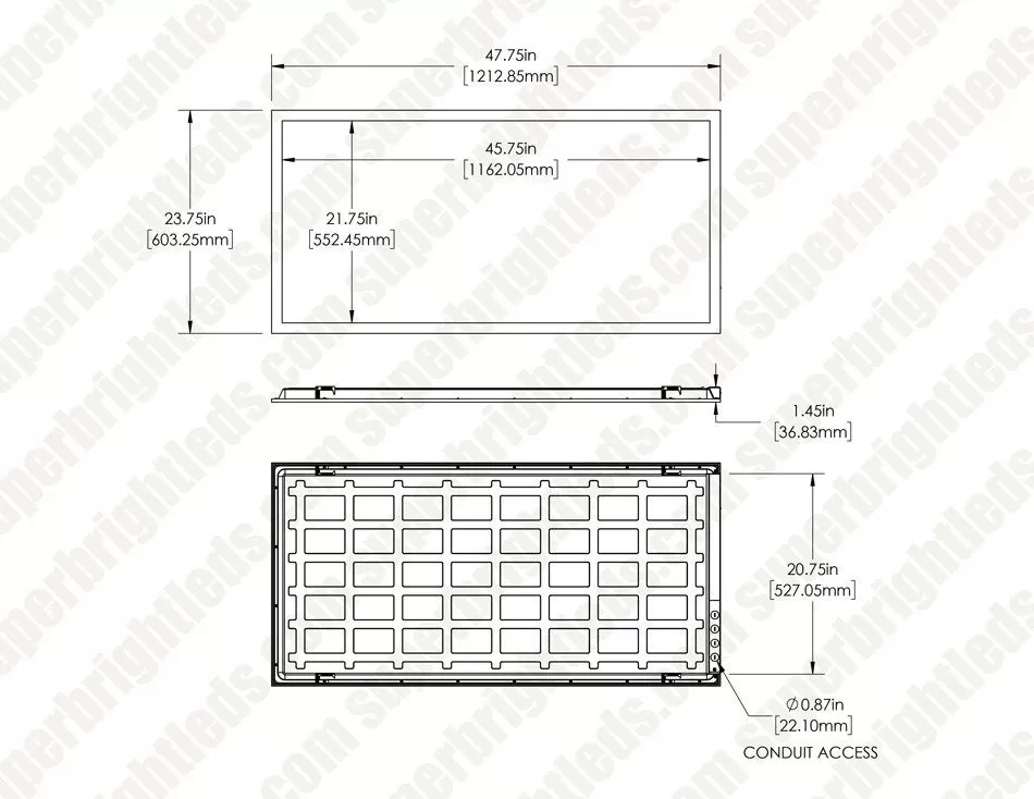 - White aluminum frame, steel backing, and frosted PMMA lens