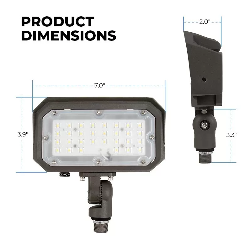 The LED flood light is a compact and versatile lighting solution for residential and commercial applications. The wide 80°x 110° beam angle is ideal for landscape lighting and signs. The flood light is built to with stand the conditions of the outdoor environment with the powder-coated aluminum housing and the IP65 waterproof rating. Adjust the light to the desired placement using the included knuckle mount. Using the mount, simply install the fixture onto a junction box.