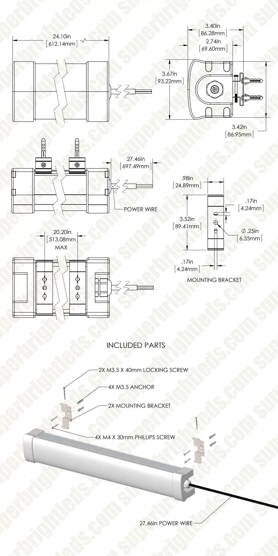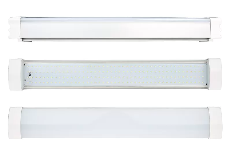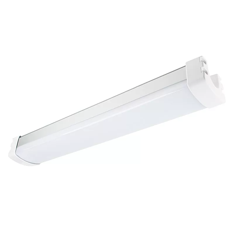 Industrial LED vapor-proof lights are the heavy-duty, super-bright alternative to traditional tube and strip light fixtures. They’re perfect for commercial lighting, warehouse lighting, parking garage lighting, tunnel lighting, supermarket lighting, and more. The 2′ low-bay LED light uses just 30 watts of power and emits 3,600 lumens of cool or natural white illumination—equivalent to the output of approximately 2 17-watt fluorescent T8 tubes. And with a life expectancy of 50,000 hours—5 times as long as florescent or MH fixtures—the LED light reduces costly repairs, disposal fees and the need for replacements. A vapor-proof, weatherproof aluminum housing and frosted polycarbonate lens are dust tight as well as water and impact resistant for use in harsh environments. Mount on a wall with included hardware or suspend from ceilings up to 10′ high with a suspension kit (sold separately). Also available in a 4′ long 50W version.
