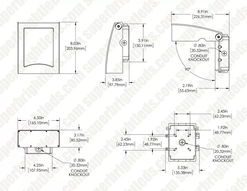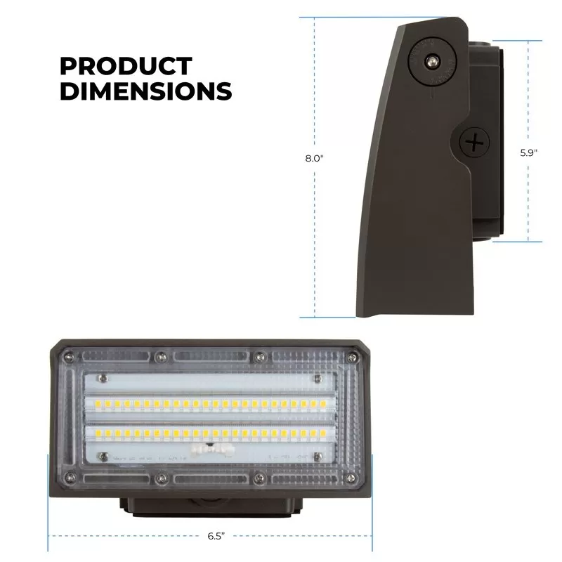 Replacing traditional fixtures with better light output and architectural design, WPA series 35W Wall Pack is a compact lighting solution with high efficiency. with out wasteful uplight, the full cutoff form and adjustable angle directs beams precisely. Aim this efficient LED after installation — closer for accenting building exteriors, outward for door visibility, or directly forward to illuminate entrance signs. Durable powder coated aluminum housing resists corrosion, while conduit entry and hinged door allows for easy mounting.