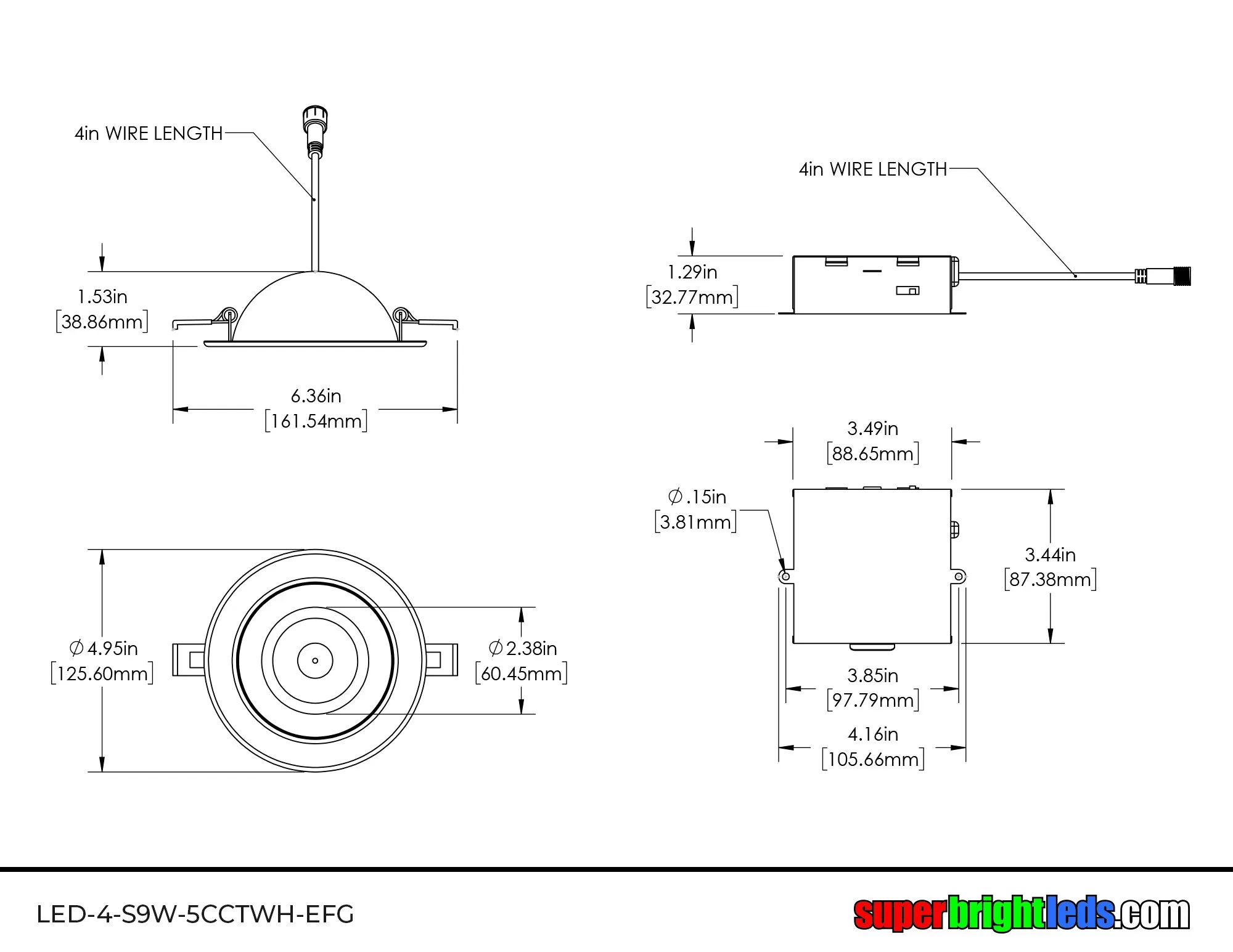 - Cut hole size: 4.25 in. (108 mm) diameter