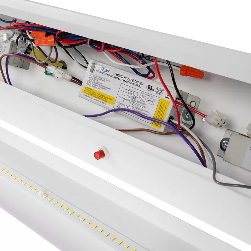 In the event of a power failure or a blackout, the linear LED stairwell corner light delivers 90+ minutes of emergency lighting. The LED corner light is designed for areas with low ceiling heights or in public corridors, stairwells, and utility areas. A curved, frosted polycarbonate lens diffuses the LEDs and creates a uniform 120° beam angle. Surface mount to the wall or ceiling using the included mounting hardware. Hardwire to power by using the 1/2“ trade size conduit knockouts. Self-test using the switch on the housing.