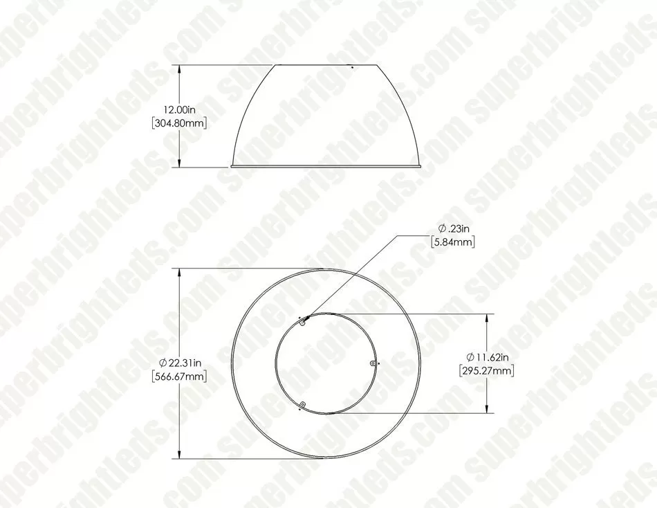 The round LED high bay is designed to lower maintenance costs by replacing traditional metal halide fixtures. The high bay is constructed with a powder-coated aluminum housing and polycarbonate lens for durability. The waterproof IP65 rating allows the fixture to withstand outdoor weather conditions. Use the compatible diffusing lens to narrow the beam angle (sold separately).