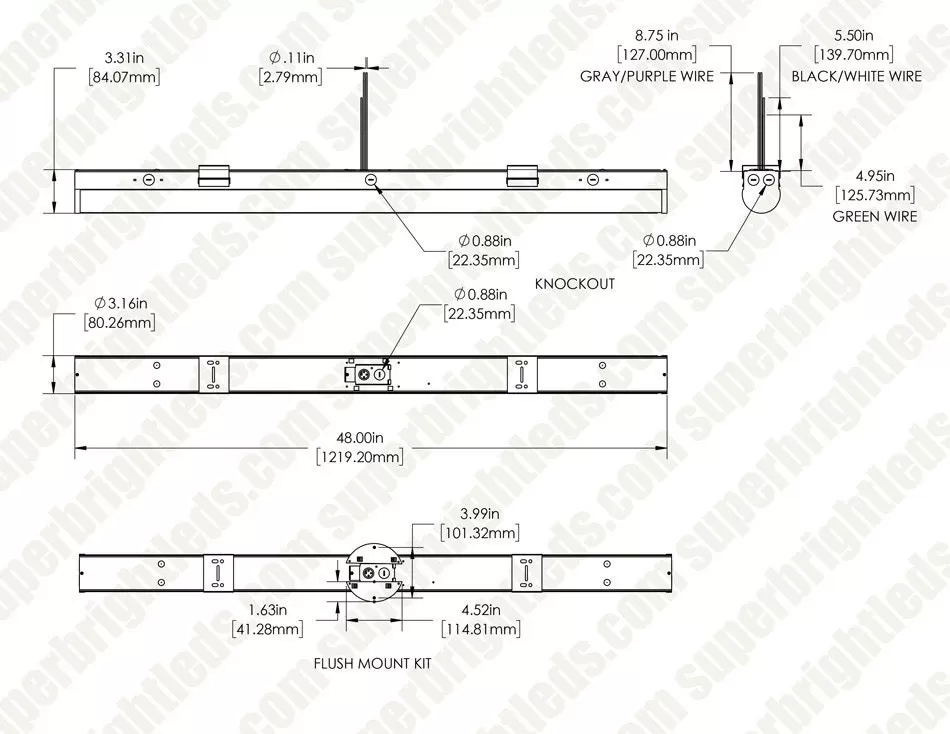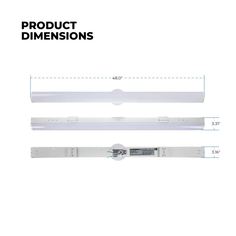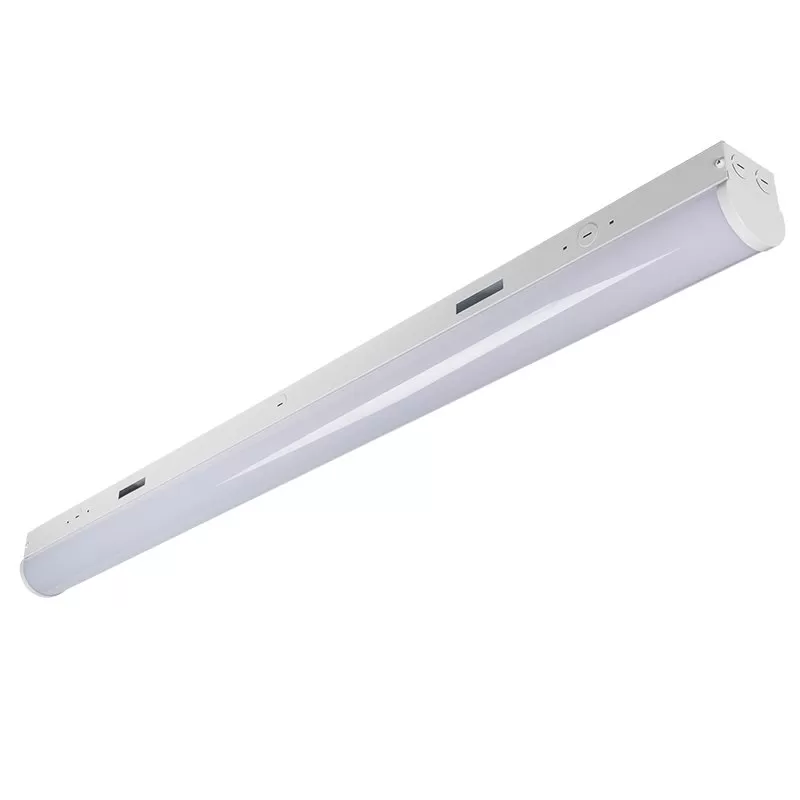 The round frosted lens of LSFD series 40W Strip Light reduces glare and dark ceilings, creating a more comfortable illumination for garages, work areas, and more. Aluminum and polycarbonate construction ensures durability and a minimal, low-profile design. Multiple mounting options and dimming capabilities provide adaptability to both residential or commercial spaces. LED technology is able to easily replace 2-lamp 32W T8 fluorescent strip lights. This linear fixture reduces costly repairs, disposal fees and the need for replacements, all with a life expectancy 5 times longer than traditional equivalents.