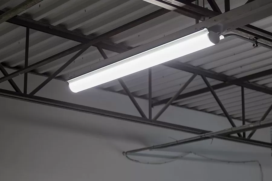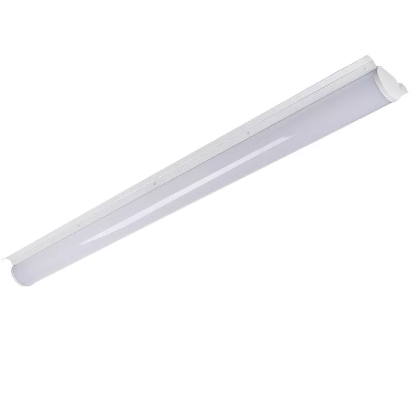 The 4’ LED strip light fixture is a long-lasting and low-maintenance solution for retrofitting existing fluorescent fixtures. Easily install into existing fluorescent strip fixtures with the included brackets, replacing two 32-watt T8 tubes. Hinged brackets allow the fixture to hang during wiring to simplify installation. Construction is both durable and lightweight, with a white steel body rated for use in damp locations. The curved lens diffuses light, producing a uniform 120° beam angle. Ideal for retrofit applications, such as basements, workshops, and garages.