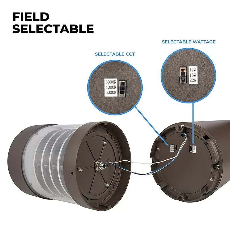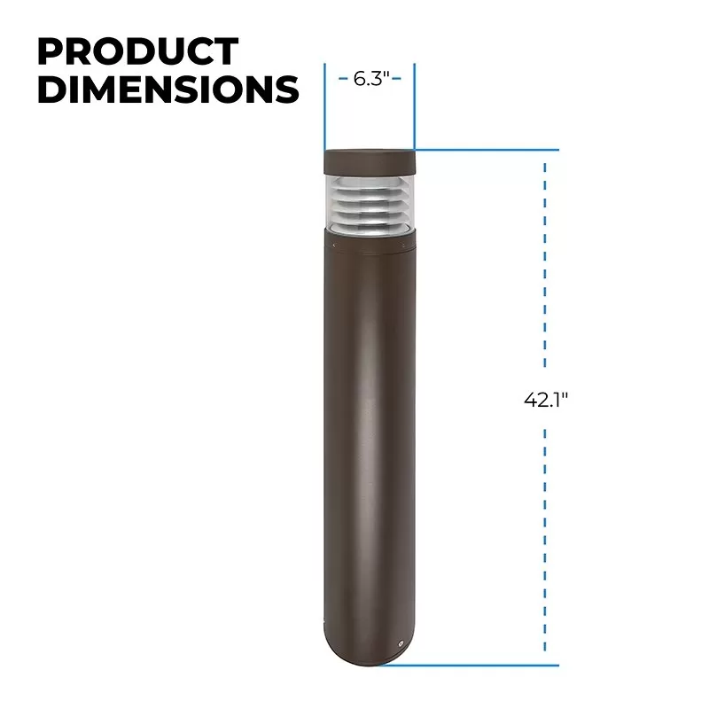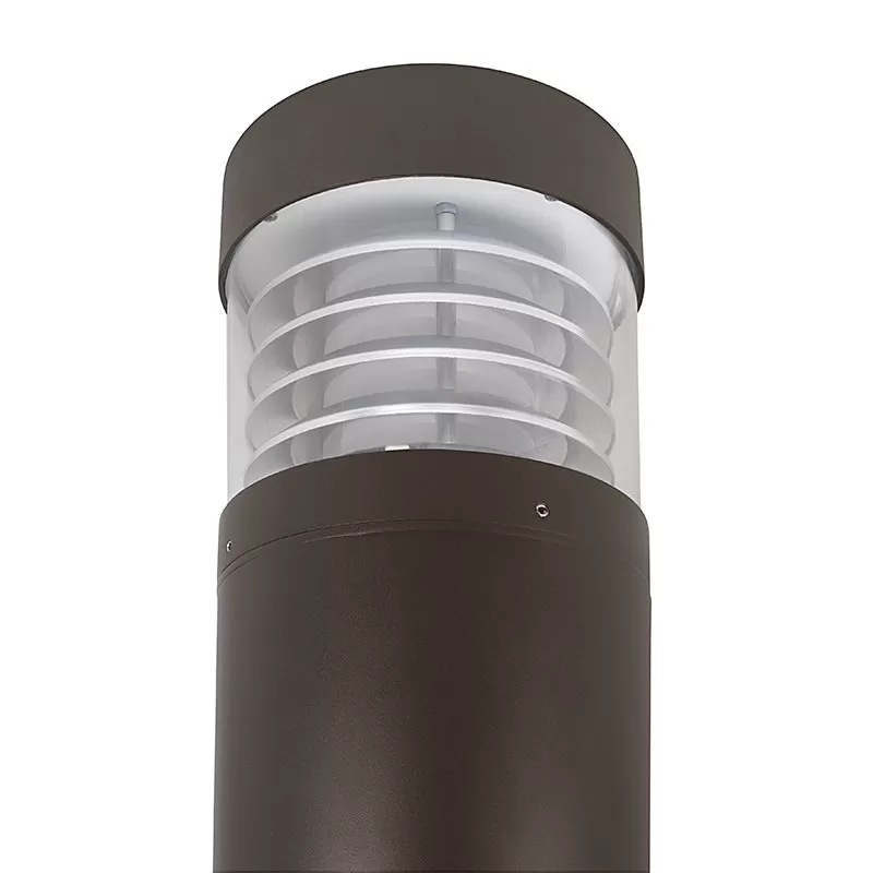 The Flat Top LED Bollard with Louvers features field selectable wattage and CCT, providing up to 1,540 lumens and replacing up to 50W metal halide fixtures with three separate wattages and color temperatures. Downward projecting louvers reduce uplight and glare. Die cast aluminum housing, polycarbonate lens, and IP65 rating ensures durability in outdoor conditions. Ideal solution for walkways and pathways, building perimeters, and building entrances.