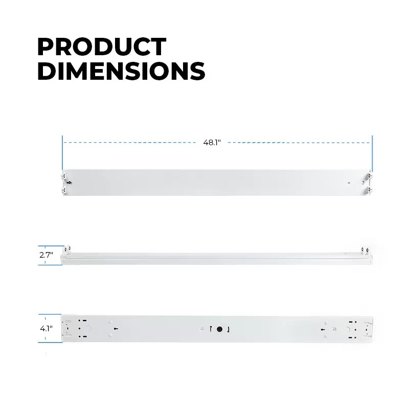 The 4-foot LED ready strip light fixture has non–shunted sockets to operate single-end Type B T8 tubes. Replace traditional fluorescent fixtures to increase energy savings. Use a daisy chain to link the fixtures together. Surface mount using the included hardware or suspension mount using one of the optional mounting kits (sold separately).