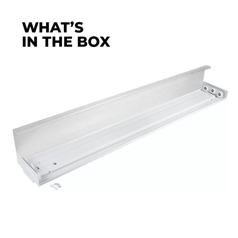 The 4-foot LED ready strip light fixture has non–shunted sockets to operate single-end Type B T8 tubes. The included diffuser lens creates a uniform light. Designed to work with LED T8 tubes, the fixture has no ballast to fail like in traditional fluorescent strip fixtures. Daisy chain the fixtures together using the 1/2 inch knockouts. Surface mount using the included hardware or suspension mount using one of the optional mounting kits (sold separately).