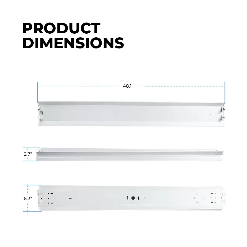 4ft LED Strip Light Fixture With Reflector - 2 18W T8 Tubes Included - 4600 Lumens - 4000K / 5000K -Lighting Decoration Store mx452alt12024bkkdxw product dims 1