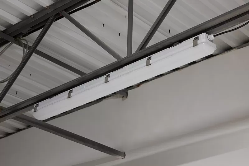 The NSF certified 4ft LED Vapor Tight Strip Light with selectable wattage and CCT is an innovative solution for harsh, damp environments. This durable fixture has a tight seal that prevents water, dust, and other particles from entering. The selectable wattage and CCT allow you to customize the light output, up to 6,500 lumens at 50W, and color temperature based on your application. An impact-resistant polycarbonate lens, lack of hazardous materials like mercury, and DLC premium 5.1 energy efficiency make this a safe and environmentally friendly choice. Use this versatile NSF certified vapor-tight light for wet location lighting applications, including food processing plants, hospitals, laboratories, healthcare facilities, industrial kitchens, paint booths, laundromats, and car washes.