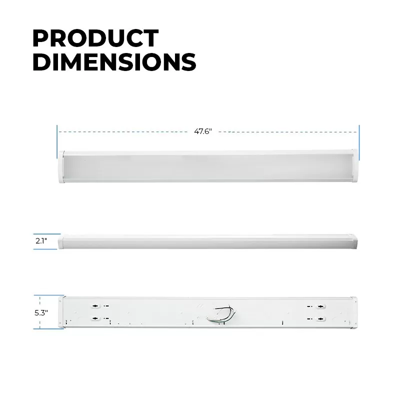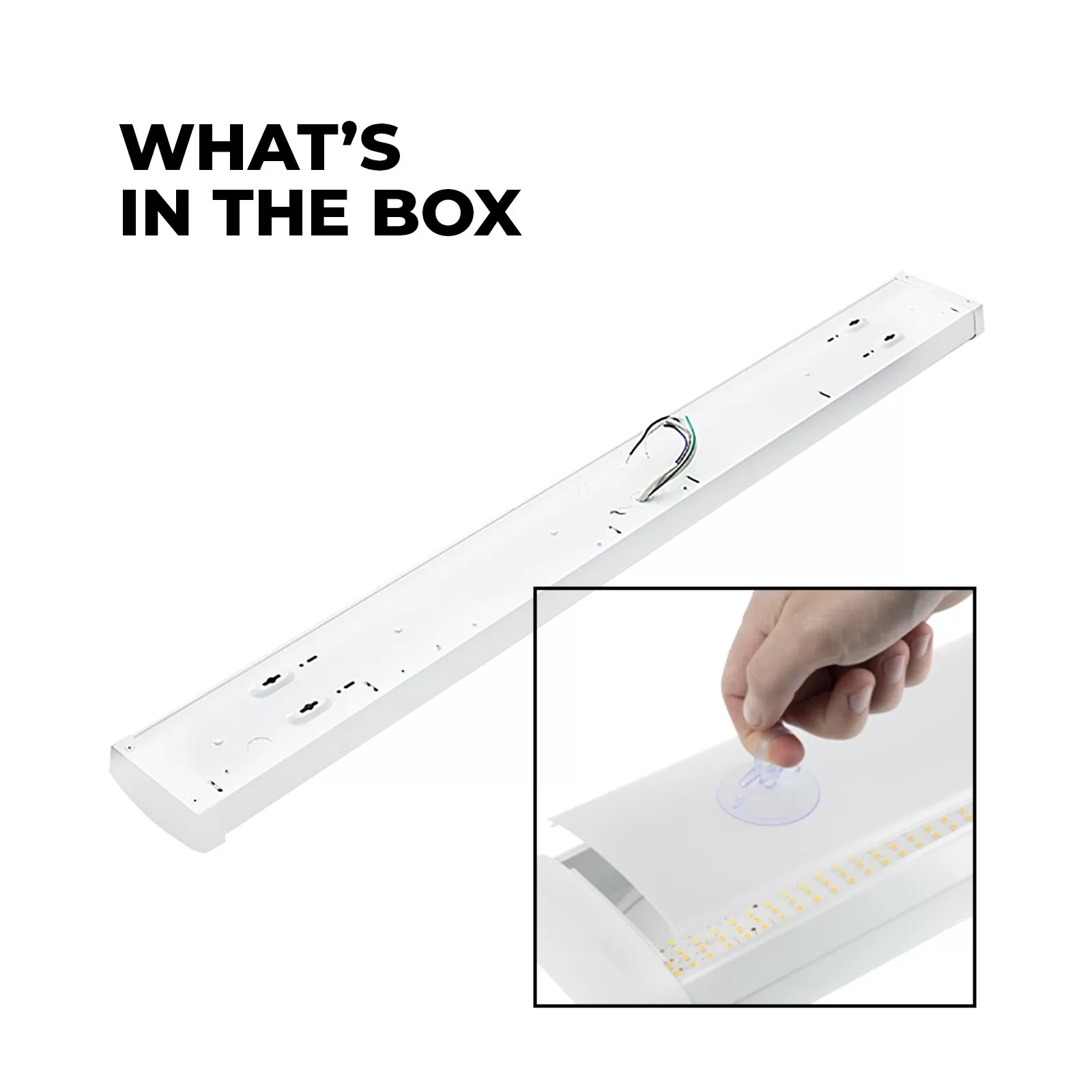 The 4ft LED Wraparound Light by Euri Lighting is designed to replace traditional fluorescent wraparound lights. The light features selectable CCT and selectable wattage to tailor the fixture to the application setting. The fixture is equipped with three color temperatures and three wattages to choose from, select the desired settings using the switches on the fixture. Output is the equivalent of two 32-watt T8 tubes. Surface mount using the included brackets.