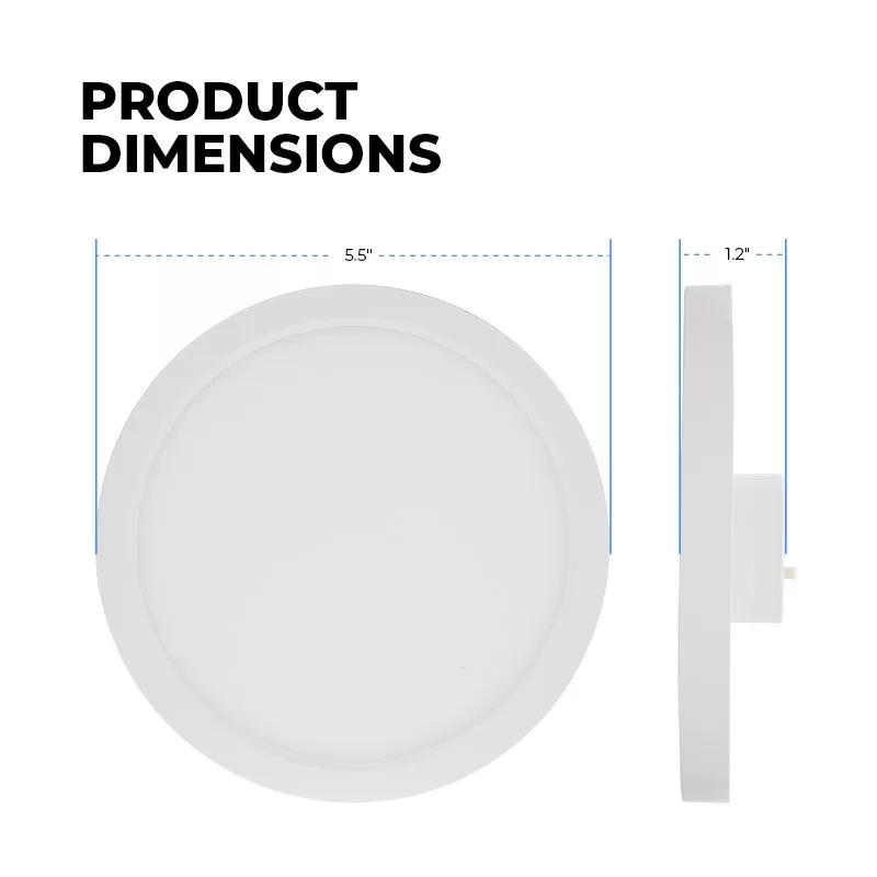 The 5″ 10W low-profile LED flush mount downlight features a white base with a matte black trim ring to fit your decor. Equivalent to a 50W halogen fixture, the dimmable 10-watt ceiling light delivers up to 650 lumens with a selectable color temperature. Choose 2700K, 3000K, 3500K, 4000K, or 5000K to match your new or existing lighting design. Ideal for new construction and remodeling applications. Use the included bracket and hardware to flush mount to a junction box in your kitchen, bathroom, or hallway.Â