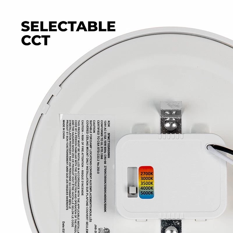 The 5″ 10W low-profile LED flush mount downlight features a white base with a brushed nickel trim ring to fit your decor. Equivalent to a 50W halogen fixture, the dimmable 10-watt ceiling light delivers up to 650 lumens with a selectable color temperature. Choose 2700K, 3000K, 3500K, 4000K, or 5000K to match your new or existing lighting design. Ideal for new construction and remodeling applications. Use the included bracket and hardware to flush mount to a junction box in your kitchen, bathroom, or hallway.Â