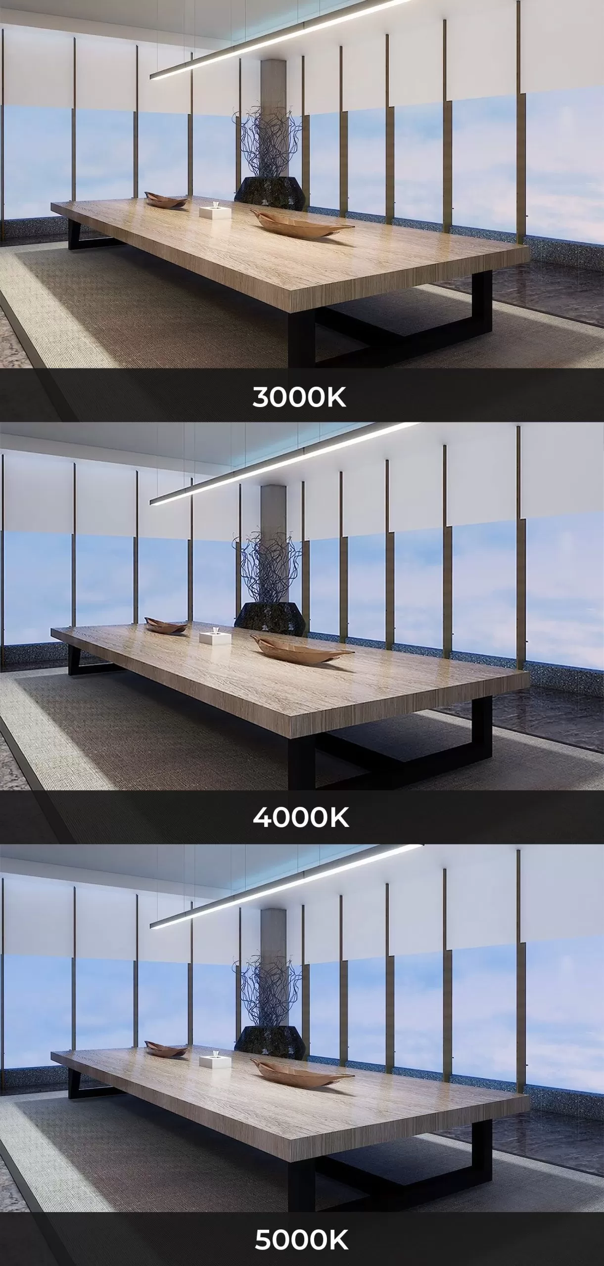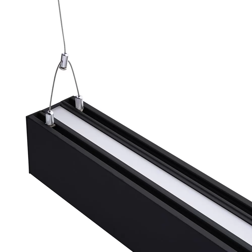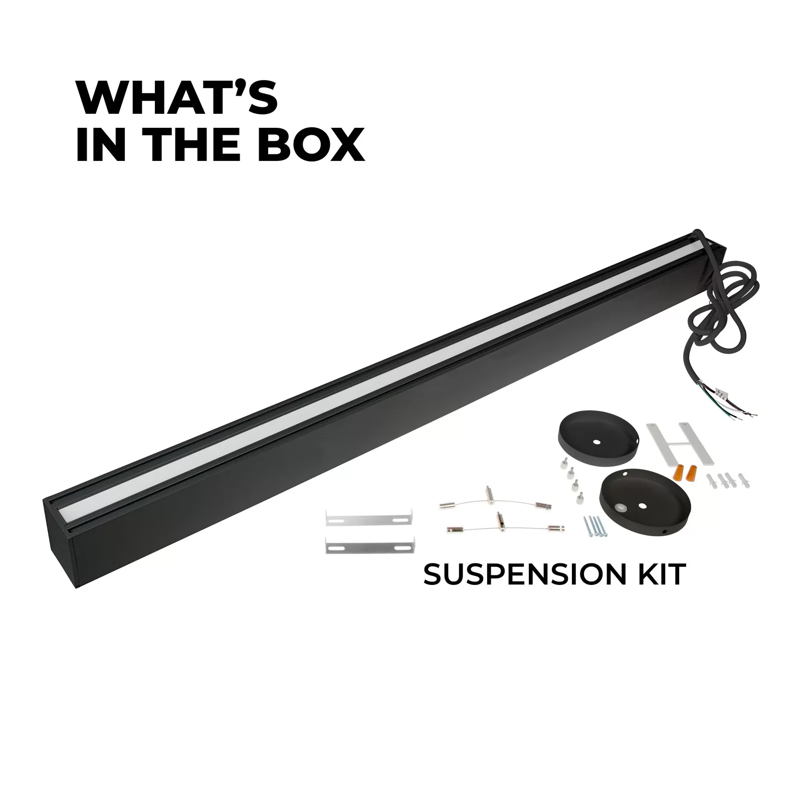 Thie 50W LED Linear Fixture from Euri Lighting is an architectural suspension light perfect for commercial spaces such as office buildings and healthcare facilities. This light features selectable CCT and has dual independent switches, meaning the color temperature of the up lighting and the down lighting can be separate. The fixture distributes 70% of total light output downward and the remaining 30% upwards. Link up to 7 light fixtures together. Mount using the included suspension hanging kit.