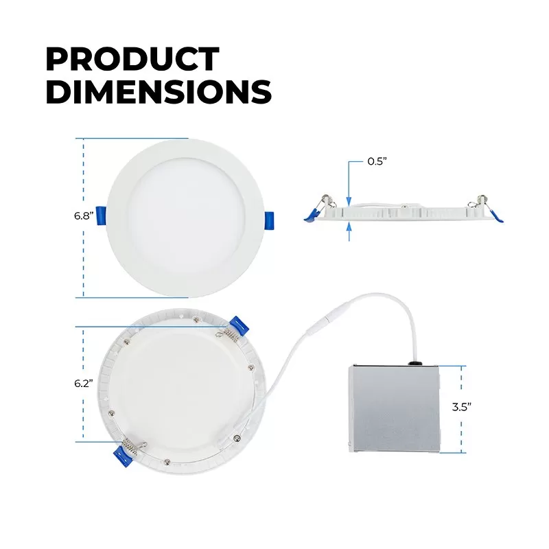 Install the ultra-thin RGB+CCT recessed downlight for colorful and customizable smart lighting. The downlight features easy control of over 16 million RGB colors and tunable whites with your phone using the Smart Life app or voice control using Amazon Alexa or Google Assistant. Adjust the saturation, dimming, and operational settings to achieve ideal lighting. The memory feature retains the settings before being turned off. Easily install the fixtures without a can light housing, an additional junction box, or a Wi-Fi controller. The thin design is perfect for shallow applications and IC-rated for direct insulation contact.