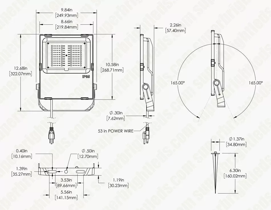 - Electrical connection: 3-prong plug with 5ft (1.5m) cable