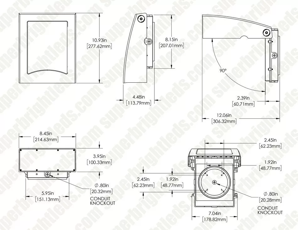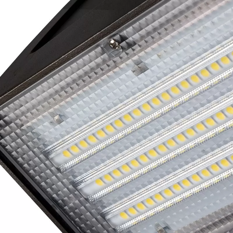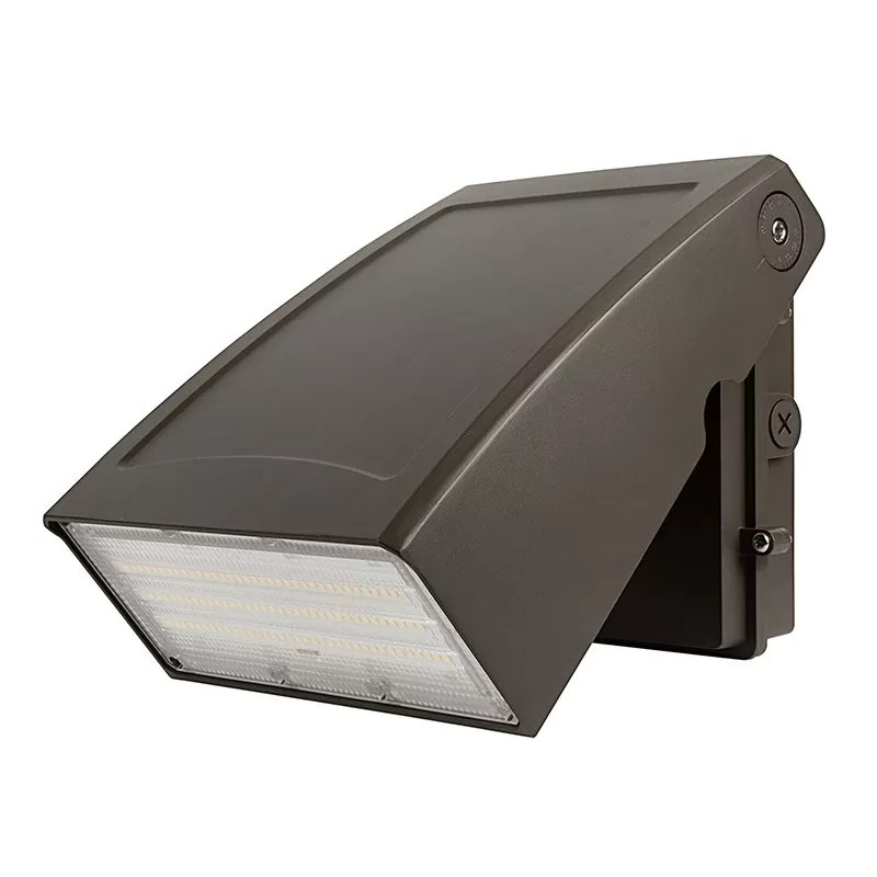WPA series 75W Wall Pack is a compact lighting solution, lasting far longer than metal halide equivalents with better architectural design and directional output. Versatile angling and full cutoff form distributes beams precisely, with out waste. This LED fixture can be aimed after installation– directly forward for a flood light application, slightly inward for outdoor path visibility, or close for accenting building exteriors. Aluminum housing has powder coating and integrated heat sinks, to run cool through all weather conditions. Conduit entry and hinged door allows easy mounting. Highly efficient output of 130 lumens per watt.