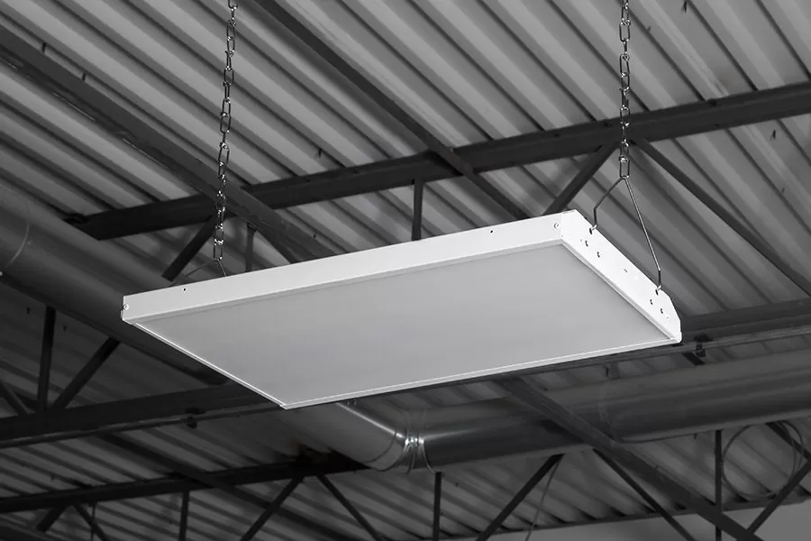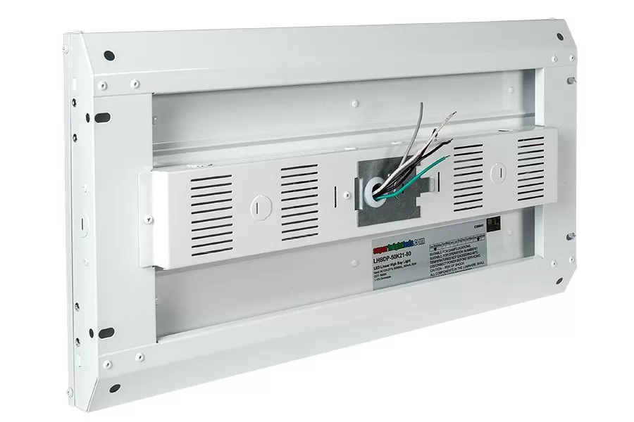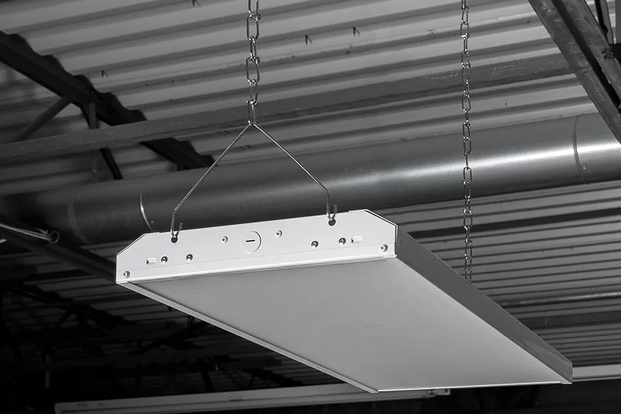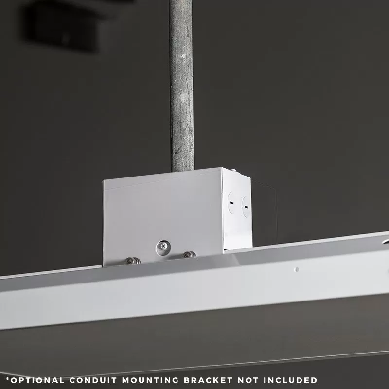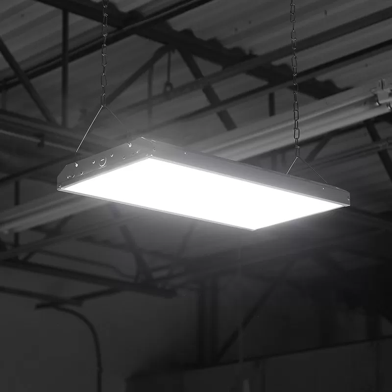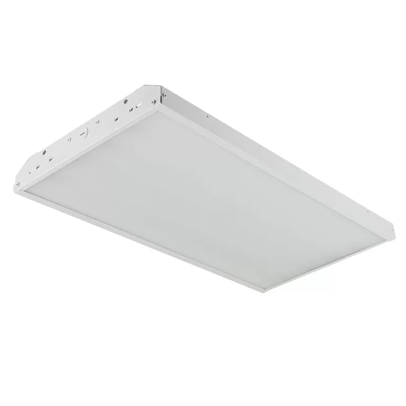 The 80-Watt Linear LED High-Bay Light emits 10,400 lumens of dimmable cool or natural white illumination. Output is equivalent to a 250 watt metal-halide bulb. And with a life expectancy that’s 5 times longer, the 2′ LED light reduces costly repairs, disposal fees, and the need for replacements. This durable light is constructed of a sheet steel housing with a frosted lens and operates with in a wide 100-277 VAC range. The LED high-bay light comes with a constant-current driver and is dimmable with a 1-10V dimmer. Easily install this light fixture with included triangle hooks and suspension chains or with a rigid conduit mounting bracket (sold separately). The linear high-bay light is perfect for warehouse lighting, factory lighting, tunnel lighting, supermarket lighting, and more. See similar 100-watt fixture.