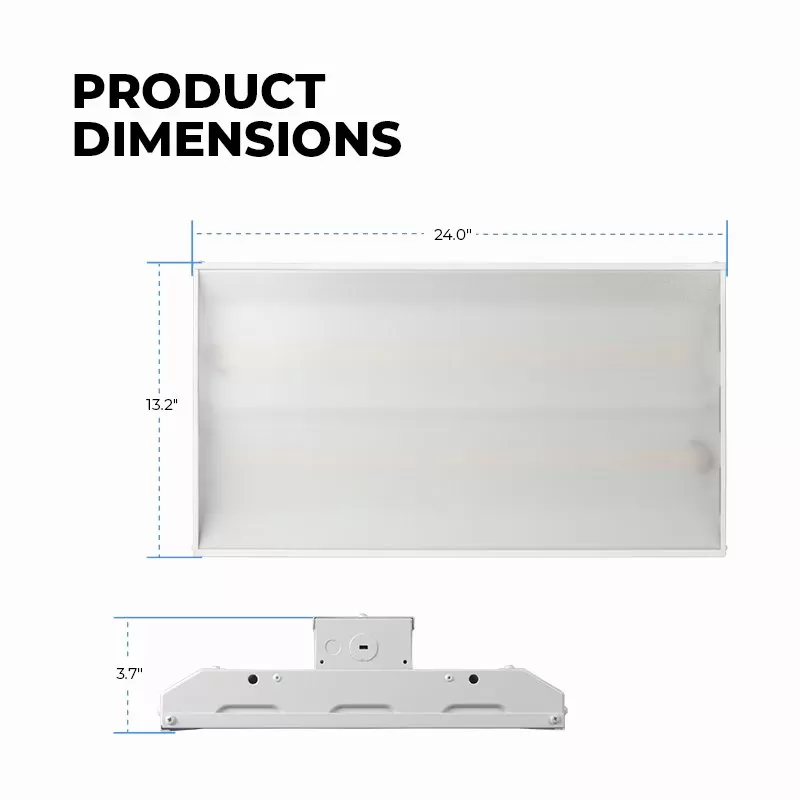 The 2-foot LED linear high bay is an energy-efficient and low maintenance lighting solution for a wide range of commercial applications. The high bay delivers 11,475 lumens with a high 135lm/W output. The polycarbonate lens diffuses light, creating an even 110° beam angle. Install using the included suspension mounting kit or using the 1/2 “ knockouts. Ideal for commercial applications such as warehouses, auditoriums, and packaging facilities.