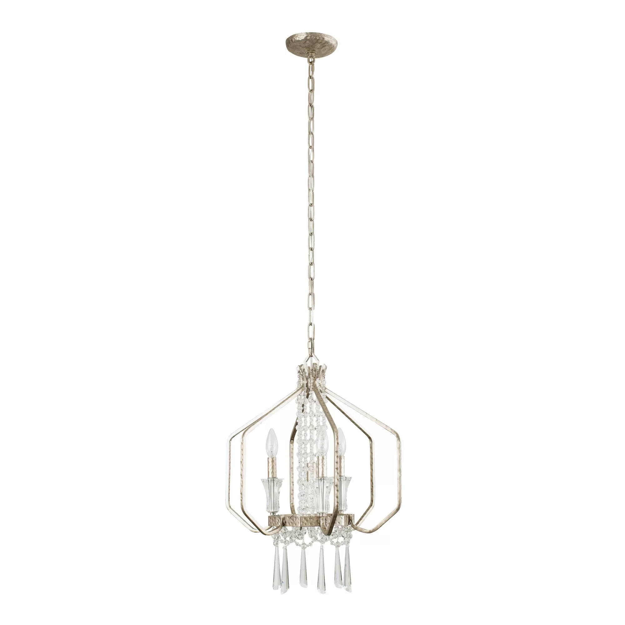 Heirloom-Quality Optic Crystal. Comes Fully Assembled. Handsomely Hammered Metal Accents. Hand Forged Recycled Steel.