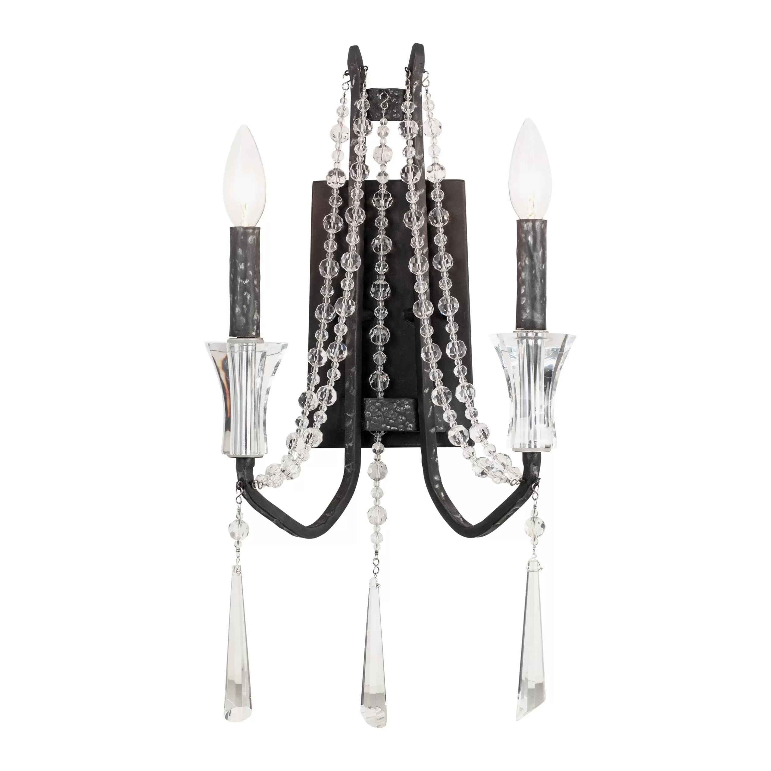 Heirloom-Quality Optic Crystal. Comes Fully Assembled. Handsomely Hammered Metal Accents. Hand Forged Recycled Steel.