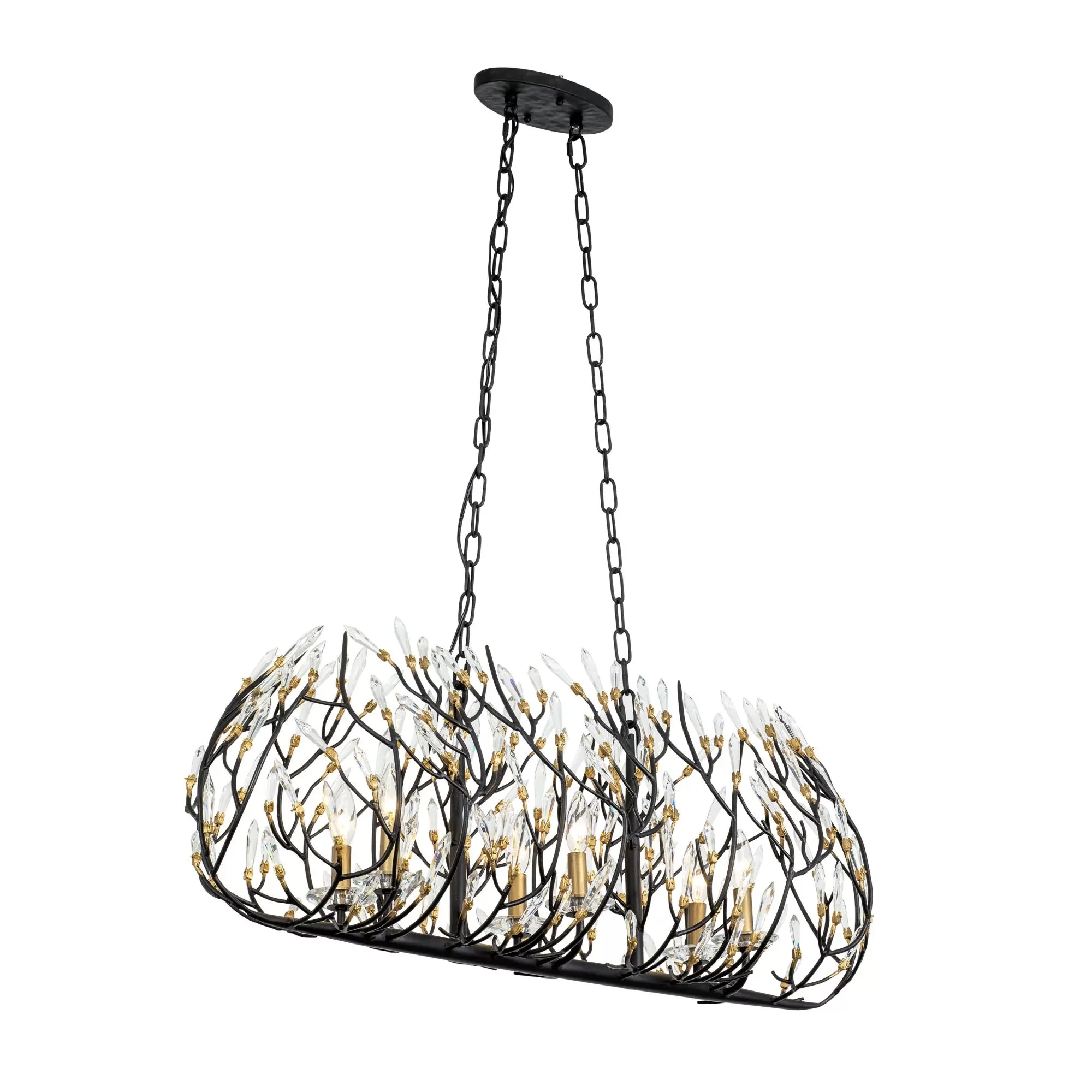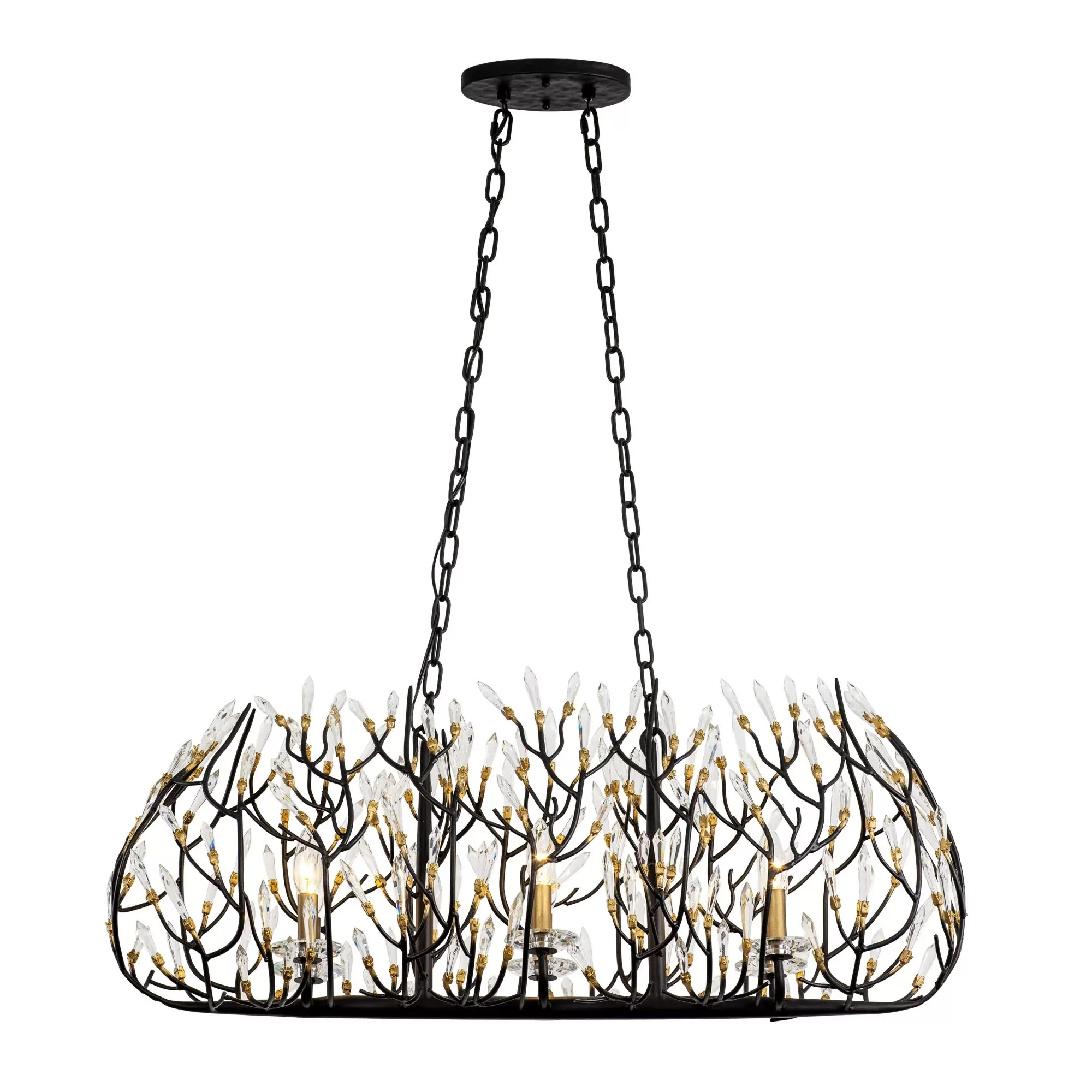 Bask is a unique crystal piece that melds together fashion influenced shapes and nature inspired details. Its pre-installed premium crystals and black with gold accents or gold dust finishes give duality with silvery sparkles and glimmering gold. This glamorous and whimsical collection is handmade using recycled steel and features unique elements, starting at the hand-hammered canopy. With stylishly sustainable choices like Bask, it’s easy to see why Varaluz was the 2018 ARTS Awards Green Award Winner.