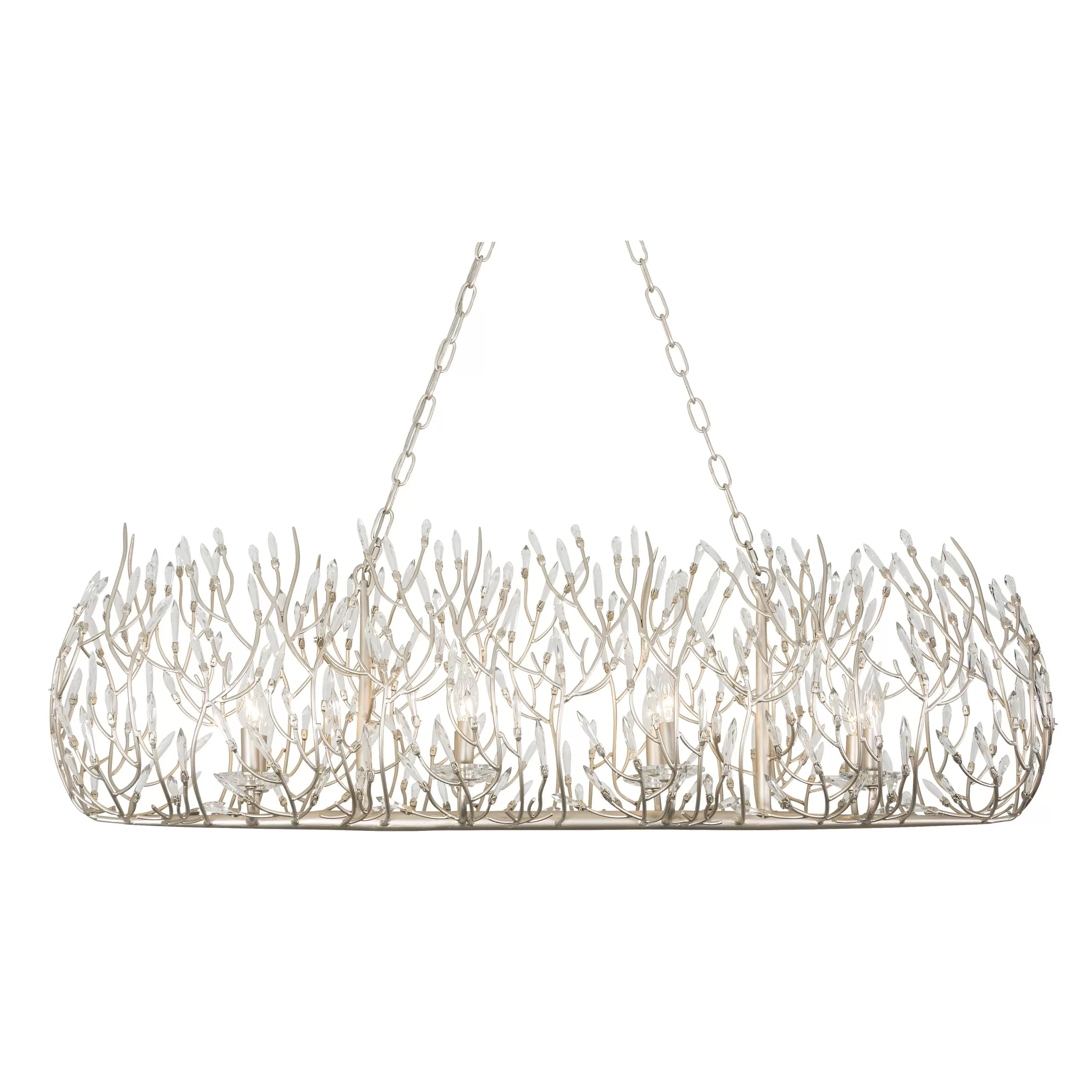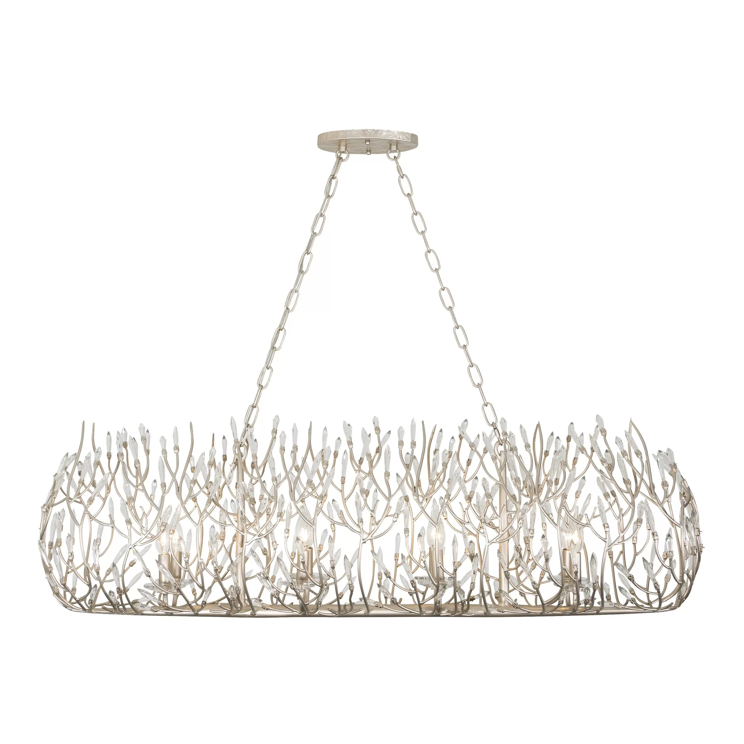 Pre-Installed Premium Crystal. Hand Forged Recycled Steel. Pre-Installed Crystal. Hand Painted Low-VOC Finish. Hand Textured Canopy. Handmade Custom Chain.