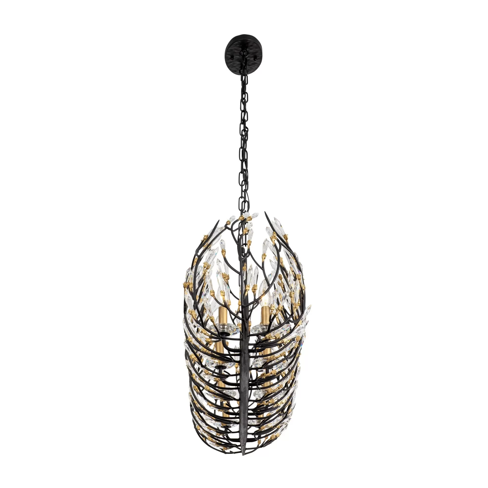 Bask is a unique crystal piece that melds together fashion influenced shapes and nature inspired details. Its pre-installed premium crystals and black with gold accents or gold dust finishes give duality with silvery sparkles and glimmering gold. This glamorous and whimsical collection is handmade using recycled steel and features unique elements, starting at the hand-hammered canopy. With stylishly sustainable choices like Bask, it’s easy to see why Varaluz was the 2018 ARTS Awards Green Award Winner.