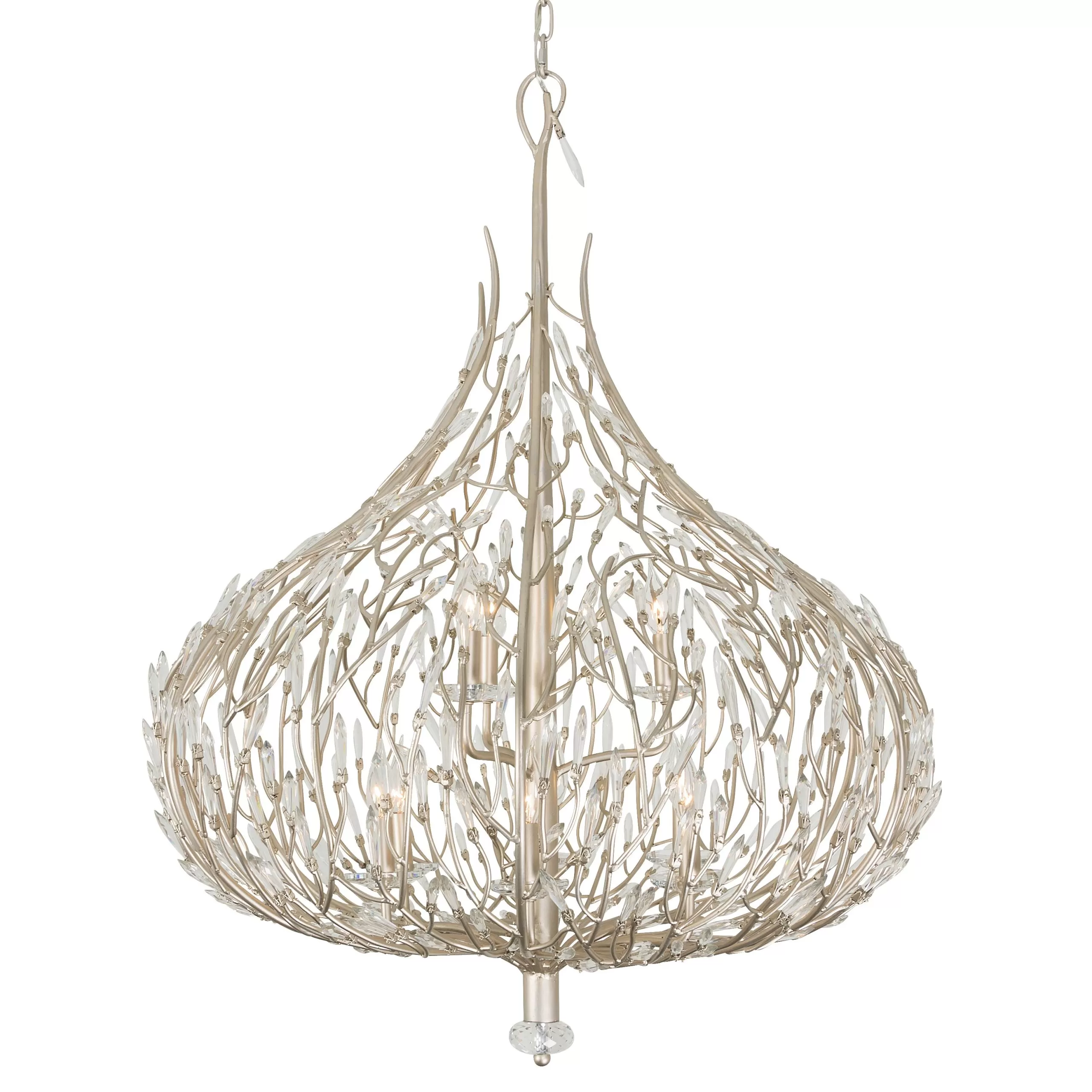 Bask is a unique crystal piece that melds together fashion-influenced shapes and nature inspired details. Its pre-installed premium crystals and gold dust finish give duality with silvery sparkles and glimmering gold. This glamorous and whimsical collection is hand-made using recycled steel and features unique elements, starting at the hand-hammered canopy. With stylishly sustainable choices like Bask, itβs easy to see why Varaluz was the 2018 ARTS Awards Green Award Winner.