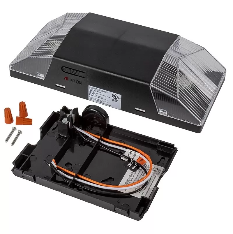 This LED emergency light fits high-quality, dependable performance into a sturdy, compact package. Premium thermoplastic housing is flame-retardant, impact-resistant, and listed for use in damp locations. A low-maintenance lead-acid battery carries no risk of over-discharge. Two fixed LED light heads can be counted upon for bright, even illumination when you need it most.