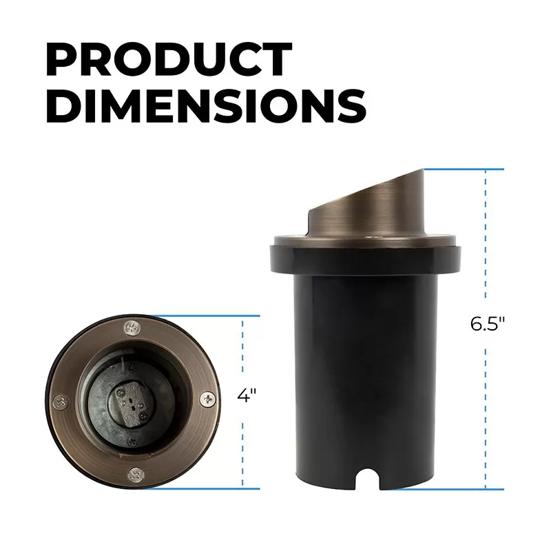 The solid brass LED-ready hooded in-ground well light is available with an RGB+tunable white MR16 smart bulb and optional RF remote control or Wi-Fi controller. Pair the bulb with your smartphone, tablet, Amazon Alexa, or Google home assistant for hands-free control with the Wi-Fi hub. The bulb can be customized, selecting from various color-changing/white modes and adjusting the speed, brightness, color, saturation, or white color temperature. Stainless steel hardware secures the hooded top and seals the glass lens to the brass housing for waterproof construction. The hooded top provides added lens protection and reduces glare. Install the polycarbonate sleeve with good drainage for optimal fixture life. This brass in-ground well light is ideal for walkways, path lighting, landscape, and architectural lighting.