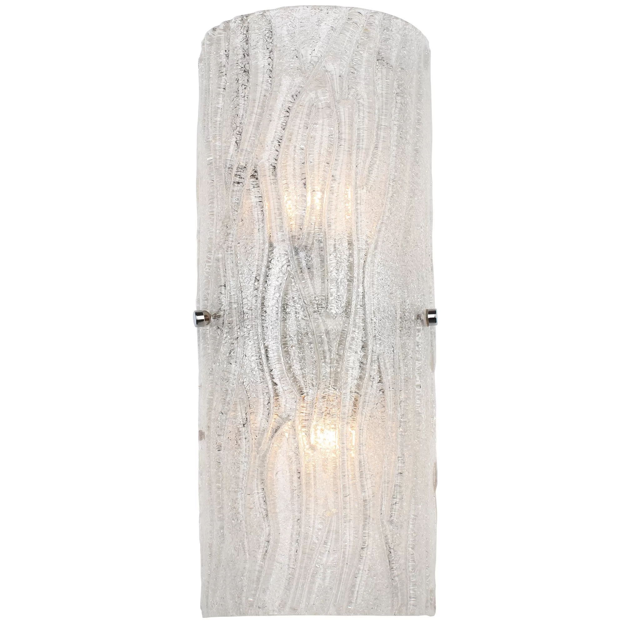 It’s back! This popular design from Varaluz’s past makes a modern and bright return. Named appropriately for its overall lighting effect, these fixtures marry crystally-cool ice glass, handmade Murano style with clear glass chips fused by heat on the back side, to clean and simple chromed metal work.
